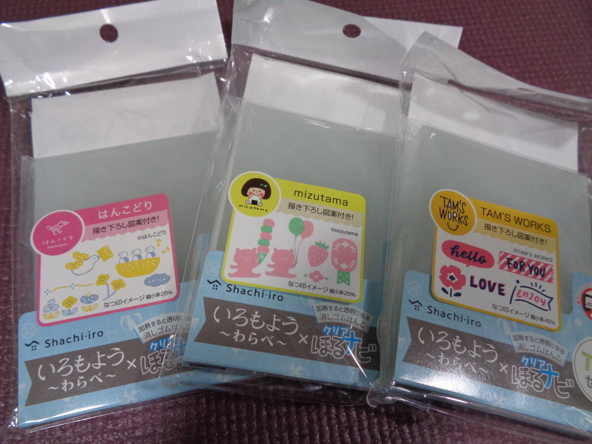 ・いろもよう ~わらべ~×クリアほるナビ TRYセットのゴム板のみ3個です。(インクは付いていません。)