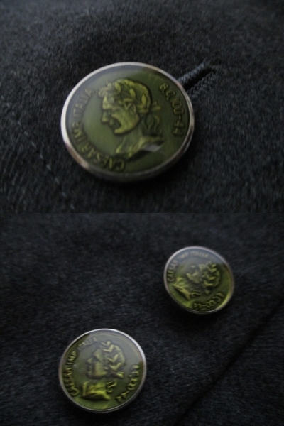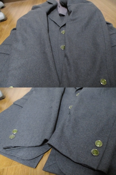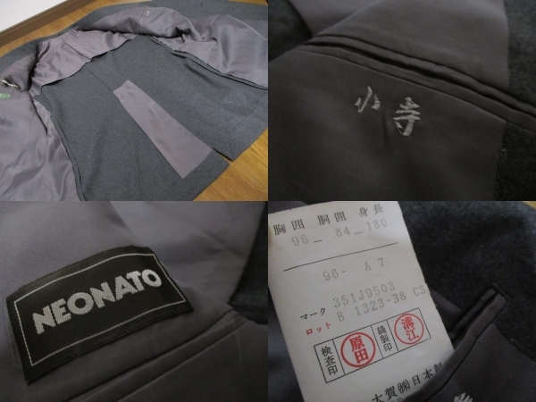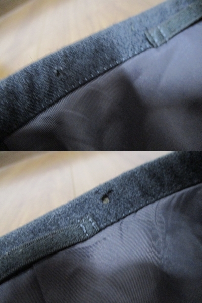 商品説明 | ●自己紹介欄ご覧ください。24時間以内に商品送付先のご連絡、3日以内にお支払厳守が取引条件になります。厳守できない方、値下げ、即決を要求する方は即落札者削除とブラックリスト登録します。ご了承ください。 ●サイズ:96-A7 ●実寸(素人採寸になりますので、多少の誤差はご了承下さい):着丈(背面襟下~裾):約75cm、身幅(脇下):約53cm、肩幅:約46cm、袖丈(肩先から):約61cm ●カラー:グレー ●素材:表地:ウール 裏地:ポリエステル ●日本製 ●中古品です。着用に伴う若干の使用感、襟裏に小さな虫食いが2か所がございますが、ご使用に問題となる大きなダメージはございません。その他状態等は画像でご確認ください。 ●自己紹介、注意事項をご覧の上、納得し、画像、商品説明で商品を理解できる方のみご検討ください。中古、年代物古着に理解のない方の入札はお断りします。 ●0925 | |