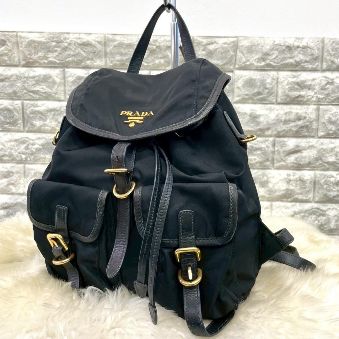 プラダ ナイロン レザー ロゴ ゴールド金具 リュックになります。