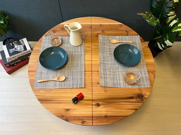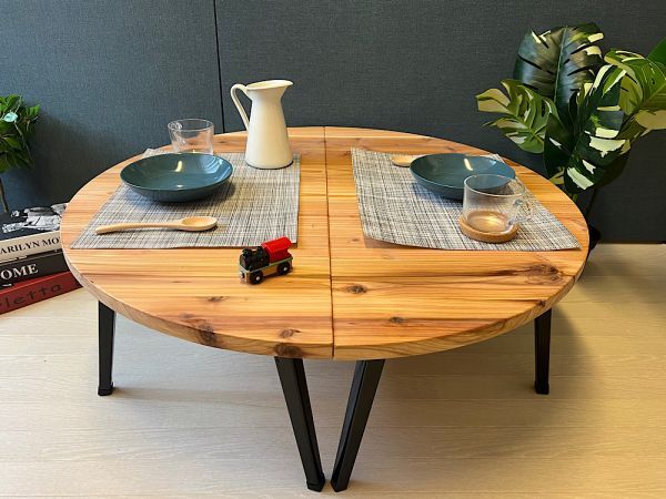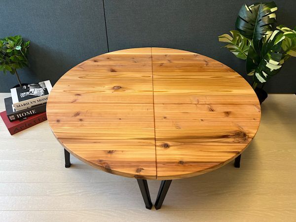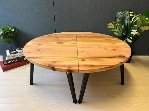 ◎荒々しい木目が特徴の、杉材を天板に使用したローテーブルです。(真円では御座いません!)