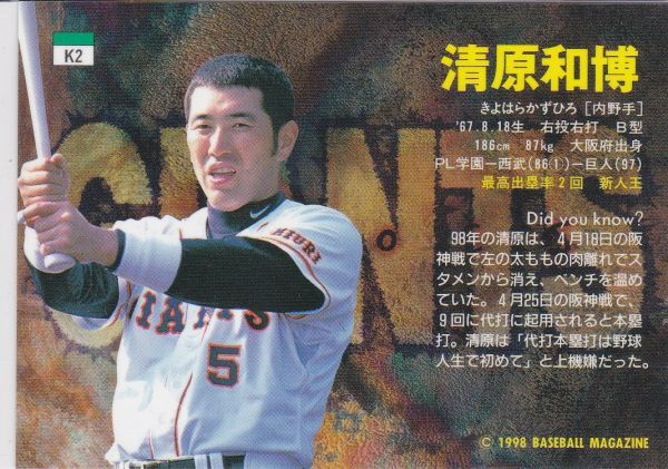 ●1998BBM/巨人 【清原 和博】 ジャイアンツヒーローズ No.K2