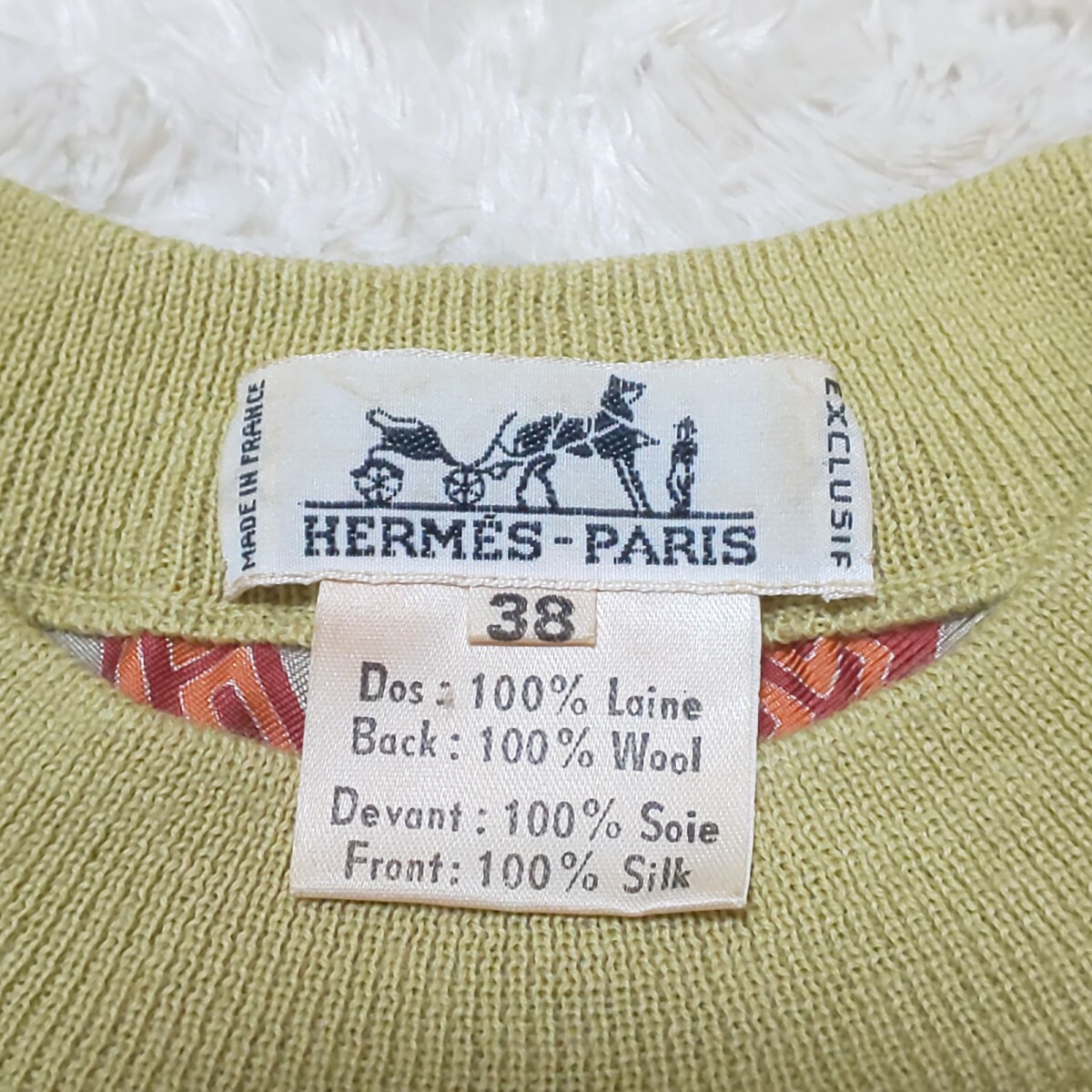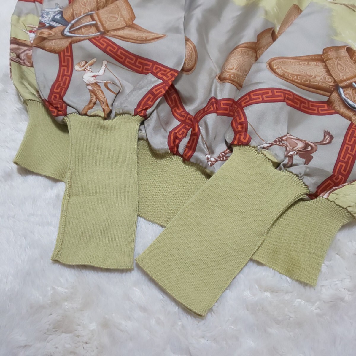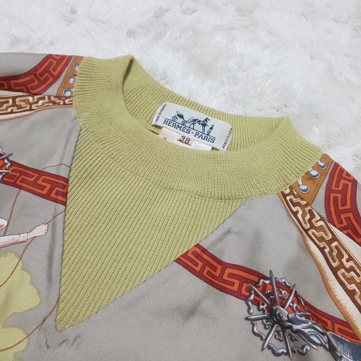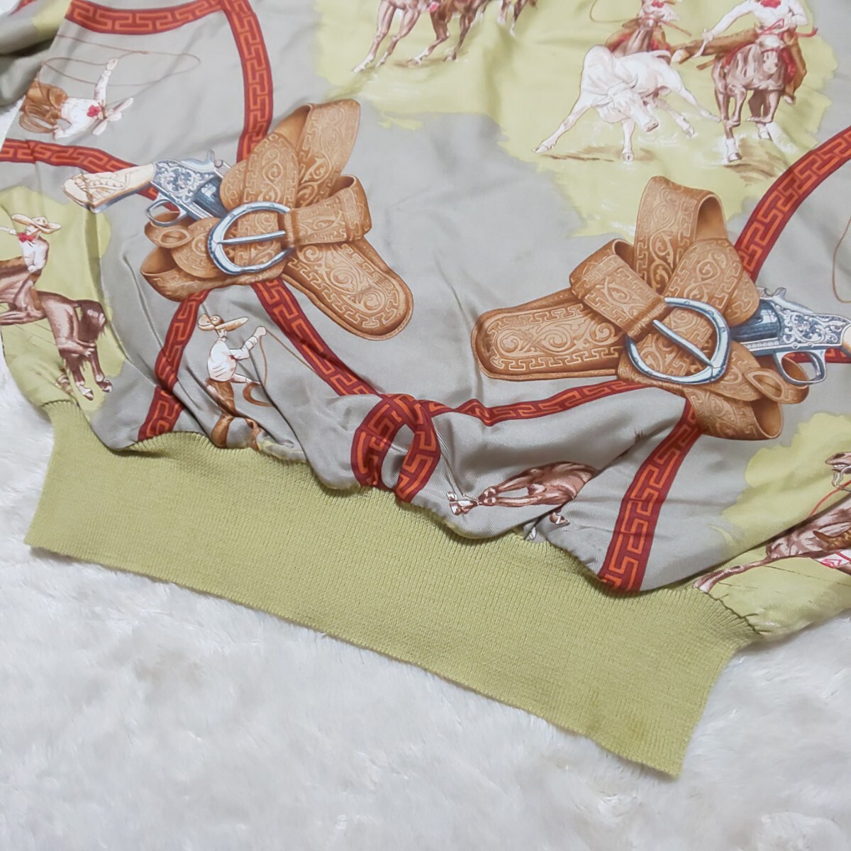 【極希少/美品】仏製 HERMES エルメス ヴィンテージ 異素材コンビニットソー セーター シルク総柄 馬 カウボーイ マルチカラー