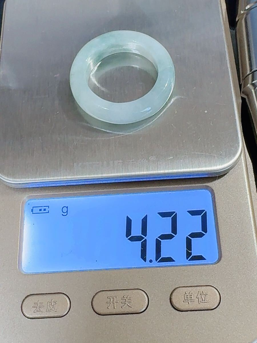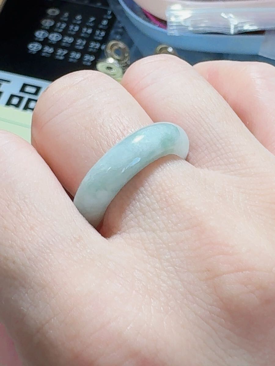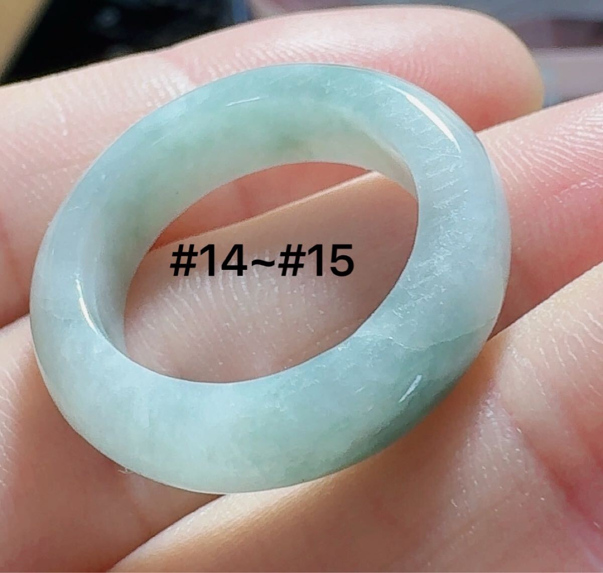 R2-02102-1天然本翡翠《本物保証》 淡緑色翡翠 指輪約14~15号 一点物 希少 縁起物 お守り 魔除け 昇進 成功 風水 金運 財運 幸運 幸福