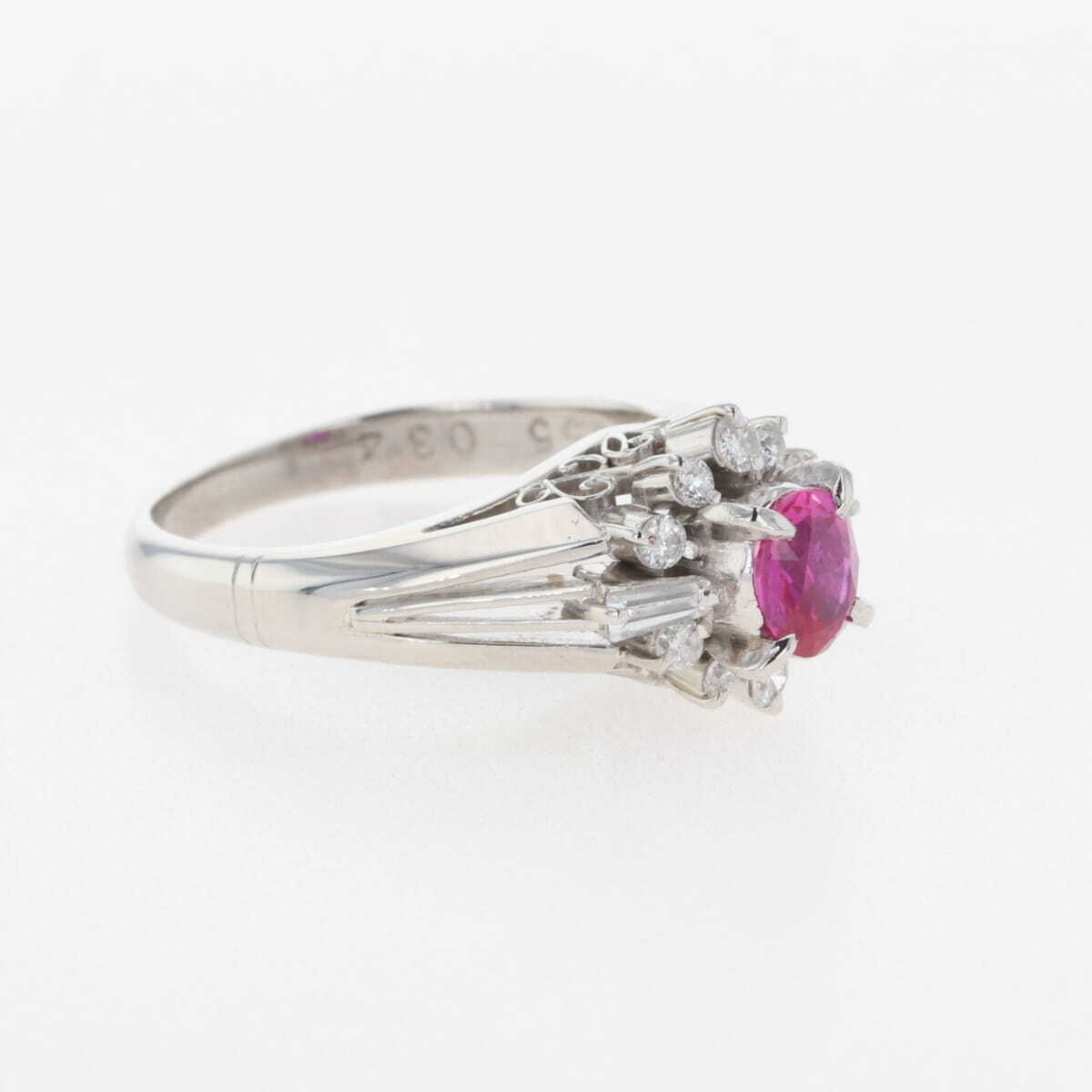 ルビー デザインリング プラチナ 指輪 メレダイヤ リング 10号 Pt900 ルビー ダイヤモンド レディース 【中古】 |