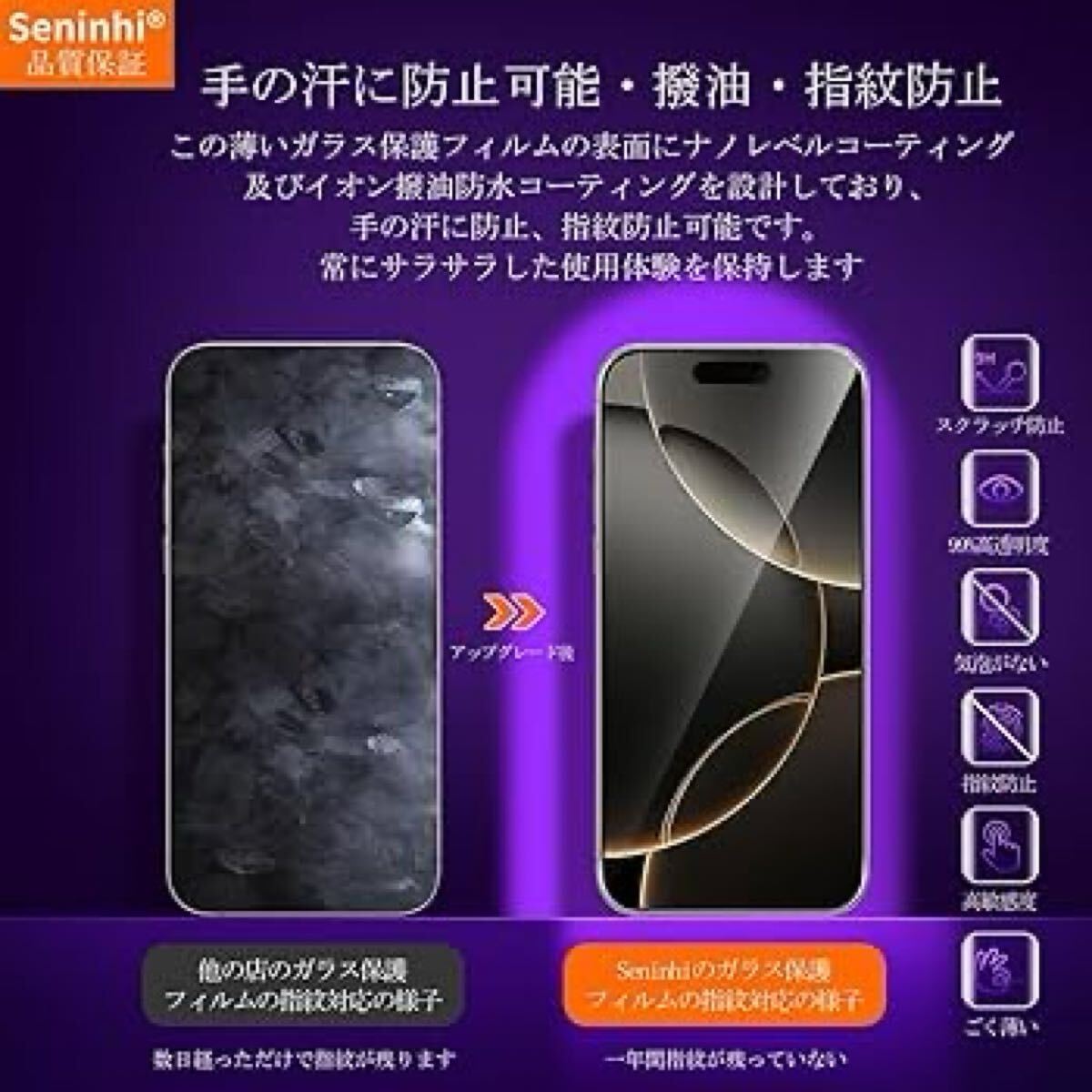 対応 iPhone 16 Pro Max ガラスフィルム ガイド枠付き 【2枚強化ガラス】 iPhone16Pro Max フィルム 指紋防止 液晶 保護 硬度9H 耐衝撃 飛散防止 自動吸着 気泡ゼロ ラウンドエッジ加工 超薄 超高質感 貼り付け簡単 【革新的なガイド枠・超簡単貼り付け・0失敗】 SENC416PM