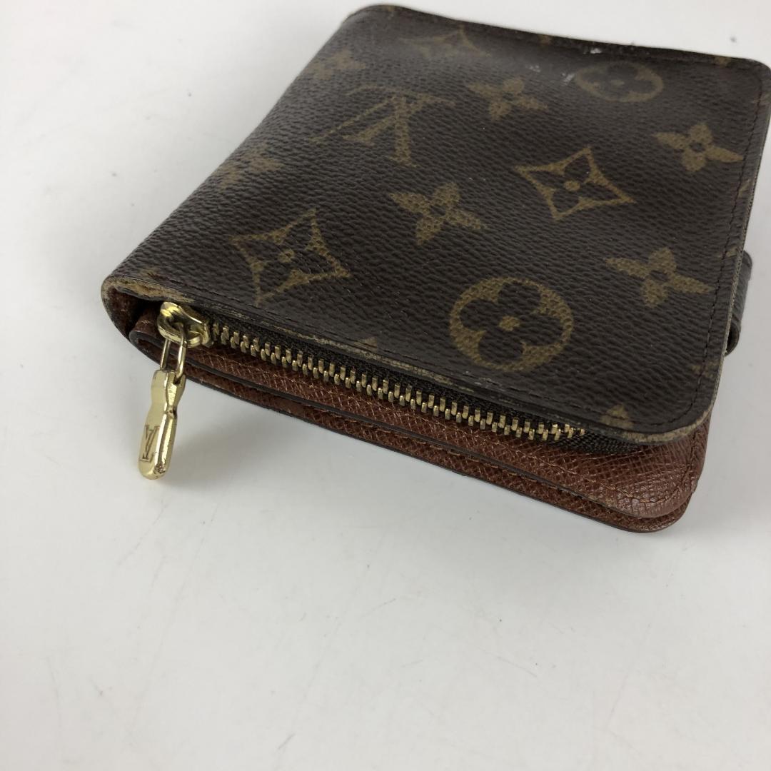 LOUIS VUITTON ヴィトン コンパクトジップ モノグラム 二つ折り財布 ブラウン 高級 ブランド エレガント 送料無料!