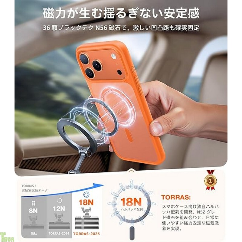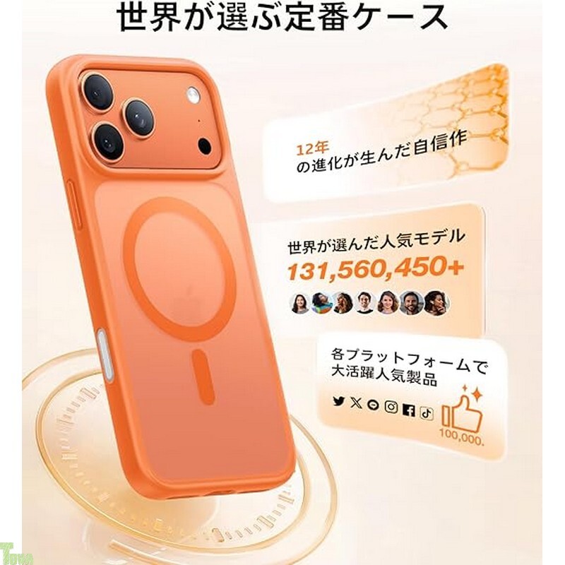 オレンジ 半透明 カメラコントロールボタン 米軍MIL規格 高性能 MagSafe 対応 アイフォン iPhone 17 Pro Max 保護 バンパー ケース カバー