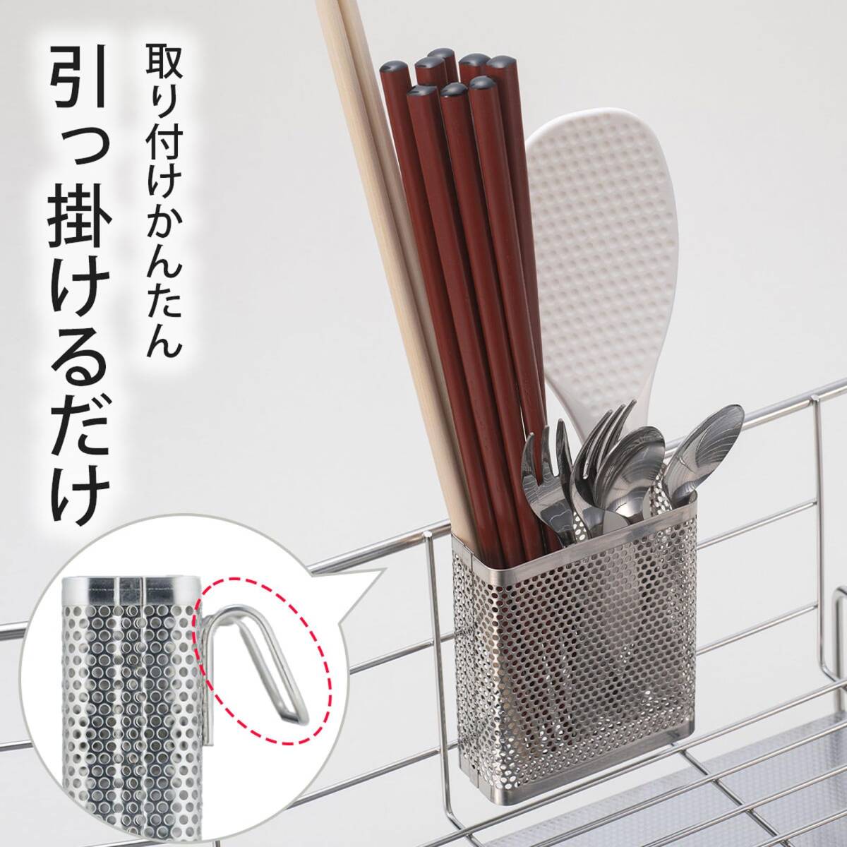 41737 燕三条 ステンレス スリム 角型 小物が落ちにくい 省スペース 箸 【日本製】 水切りラック用 カトラリーポケット 下