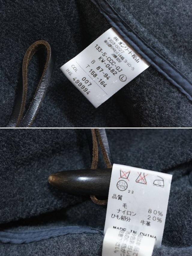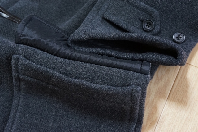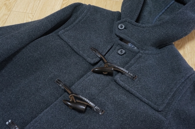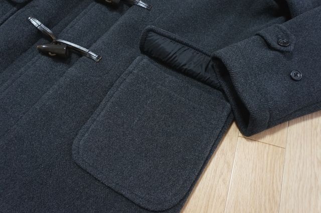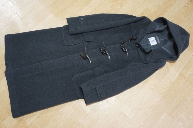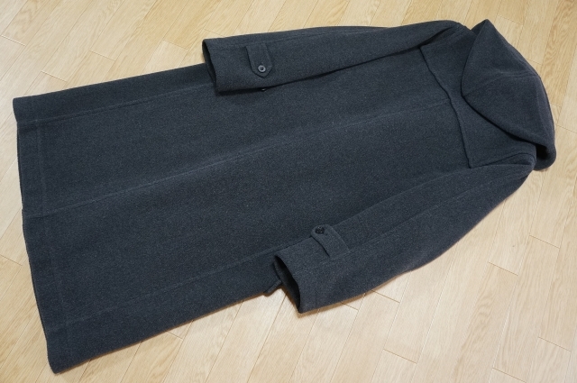 J526 即決 良品 オンワード樫山 J.PRESS ジェイプレス ヘリンボーンウール ロング ダッフルコート L 158~164 チャコールグレー