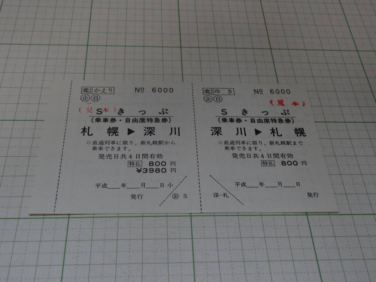 【JR北海道】Sきっぷ 札幌-深川 3980円 発行駅未押印 見本印押印