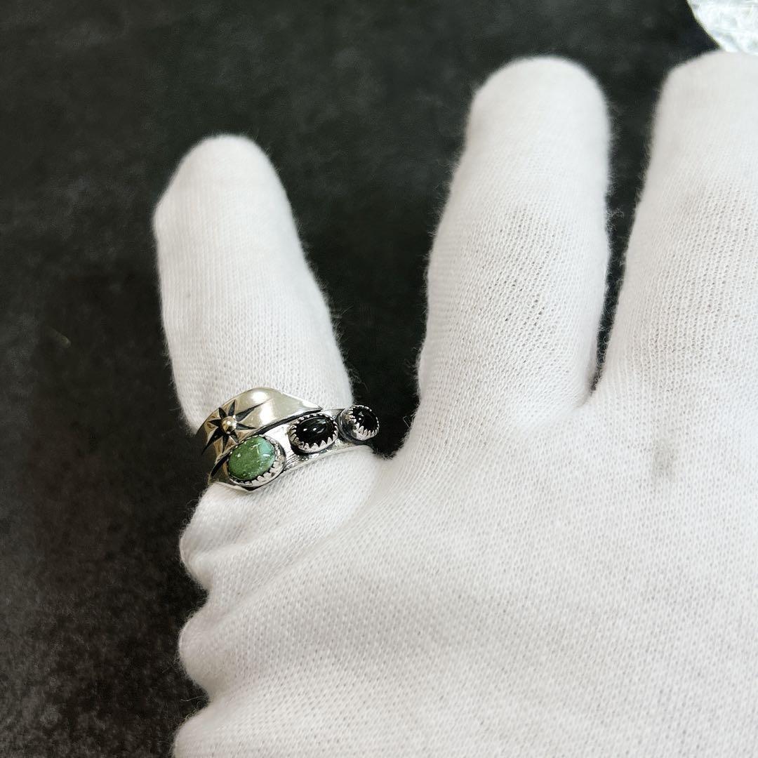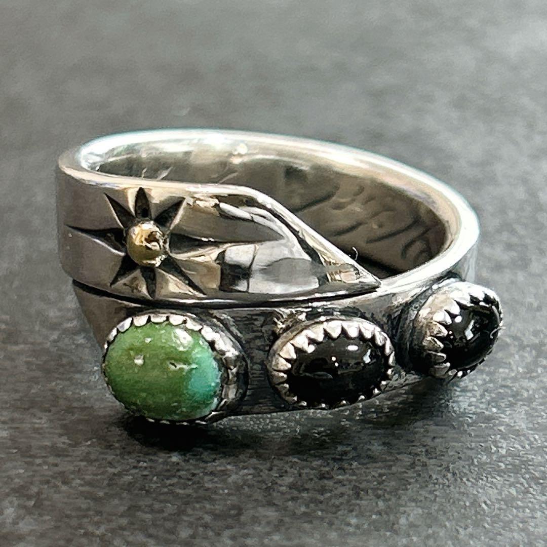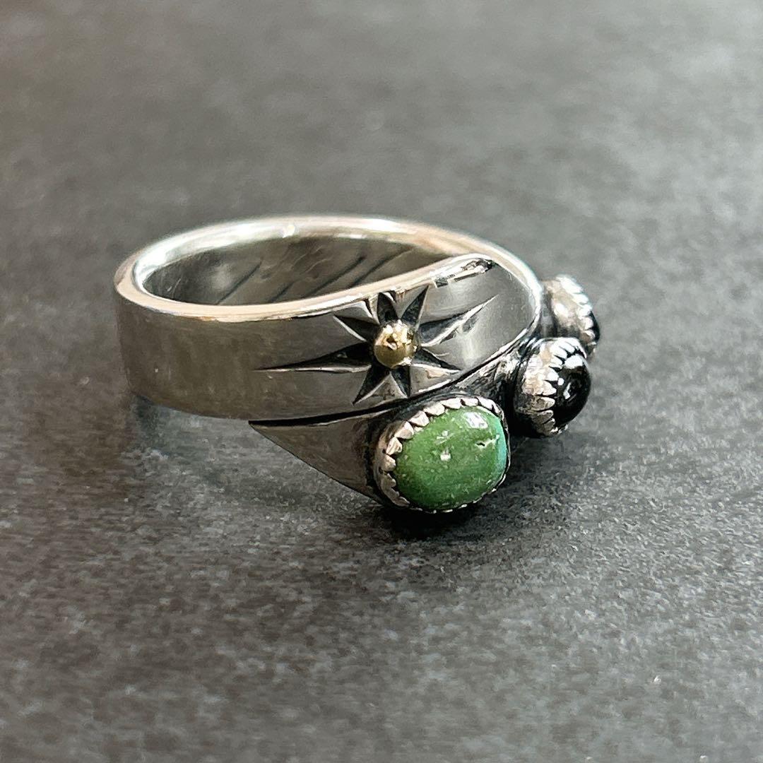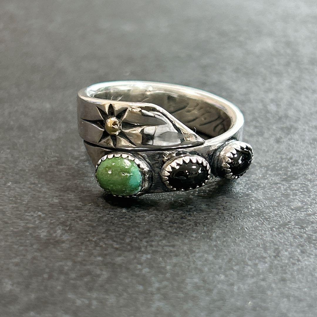 鮮やかなグリーンターコイズと漆黒のオニキス、
