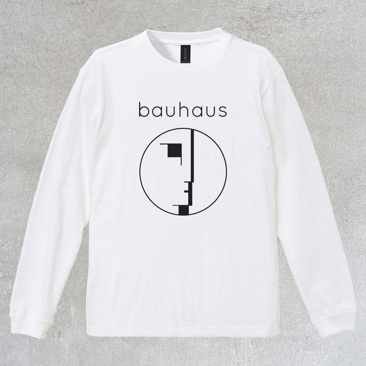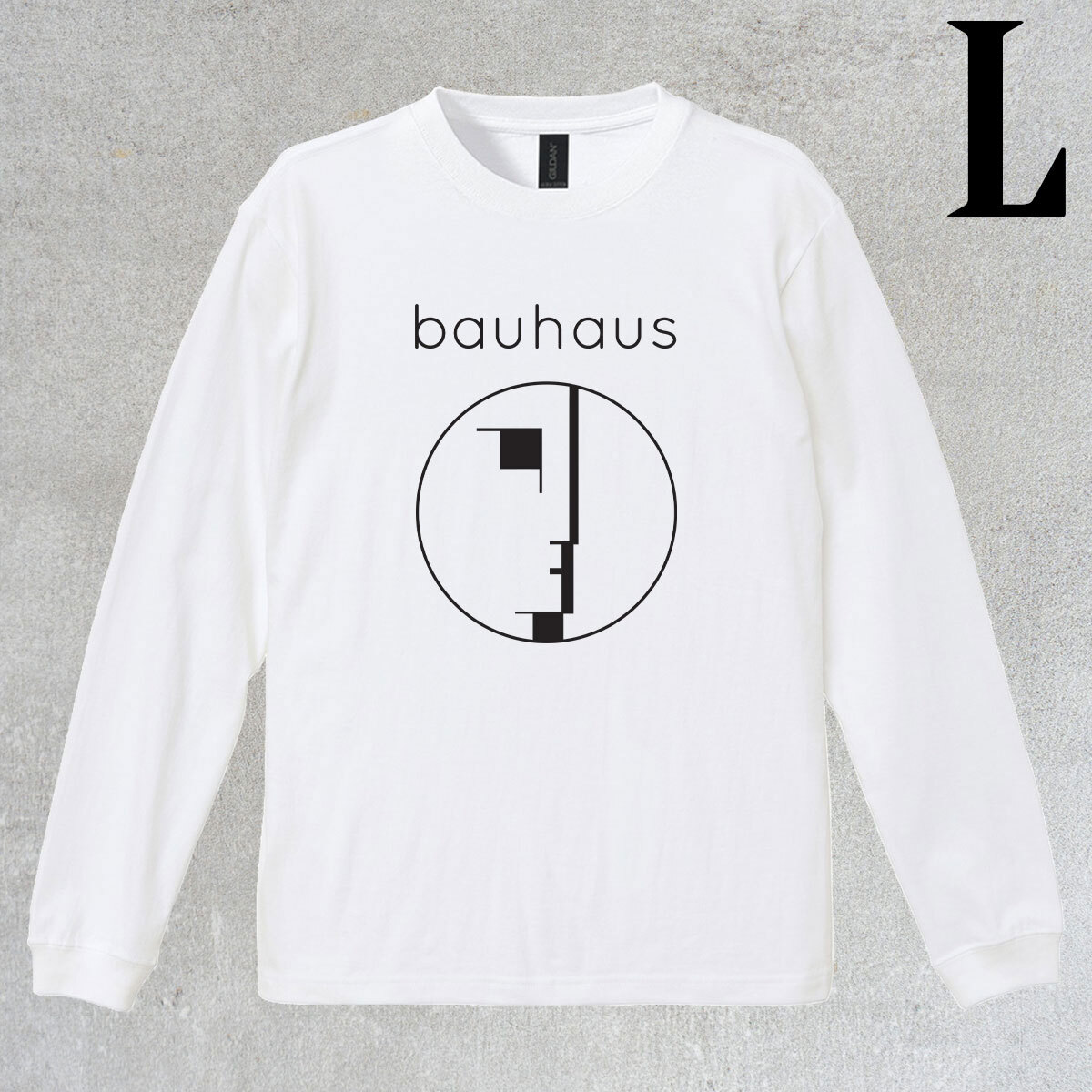 バウハウス bauhaus ロゴ イラスト プリント リブ付き 長袖 Tシャツ ロンT ロックTシャツ カジュアル 6.0oz コットン100% ユニセックス L