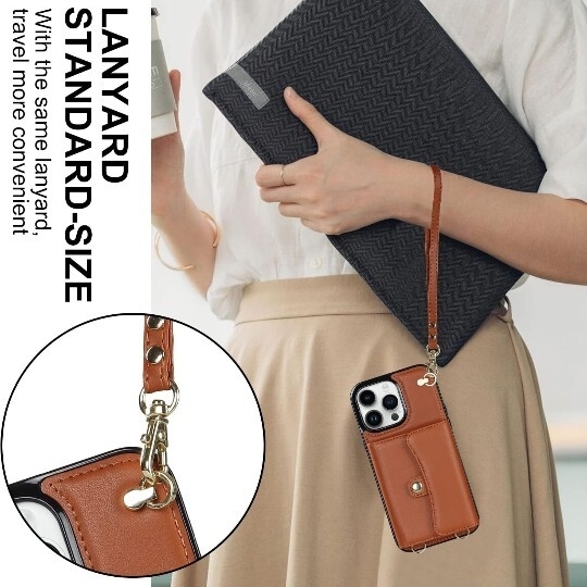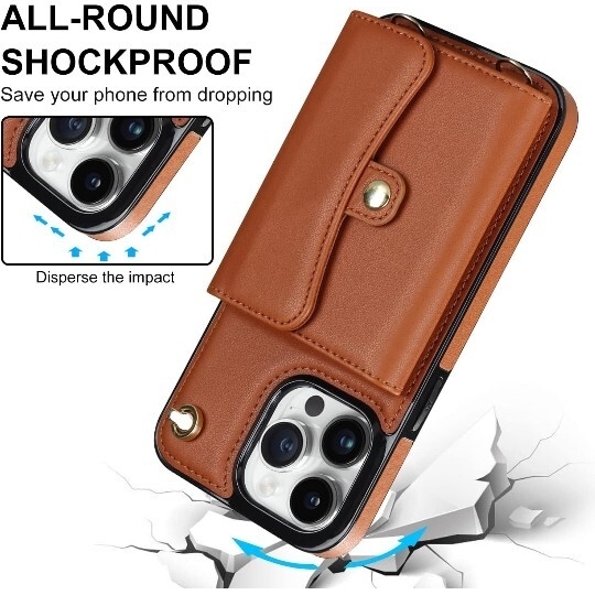 iPhone15 Proスマホ ケース 手帳型 iPhone15 Proショルダー ケース 肩掛け 首かけ 斜めがけ ショルダー ケース iPhone15 Pro手帳型 ケース アイホン15 Proケースカード収納【RFID機能】iPhone15 Pro財布型ケースCASE【肩掛け&手掛け】携帯のケース可愛 磁気機能クロスボディケース 横置-ブラウン