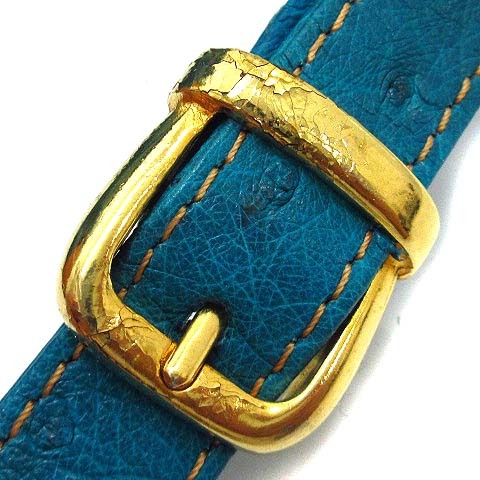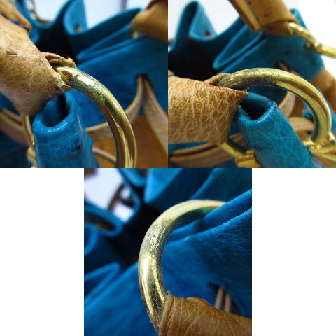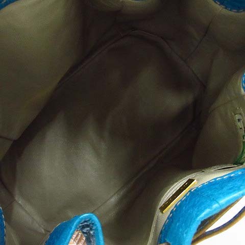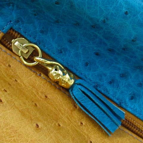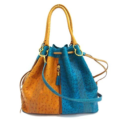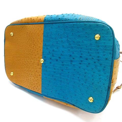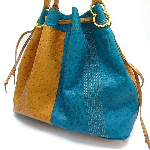 CROCOLUX オーストリッチ レザー 巾着 2WAY バッグ ベージュ ターコイズ イタリア製
