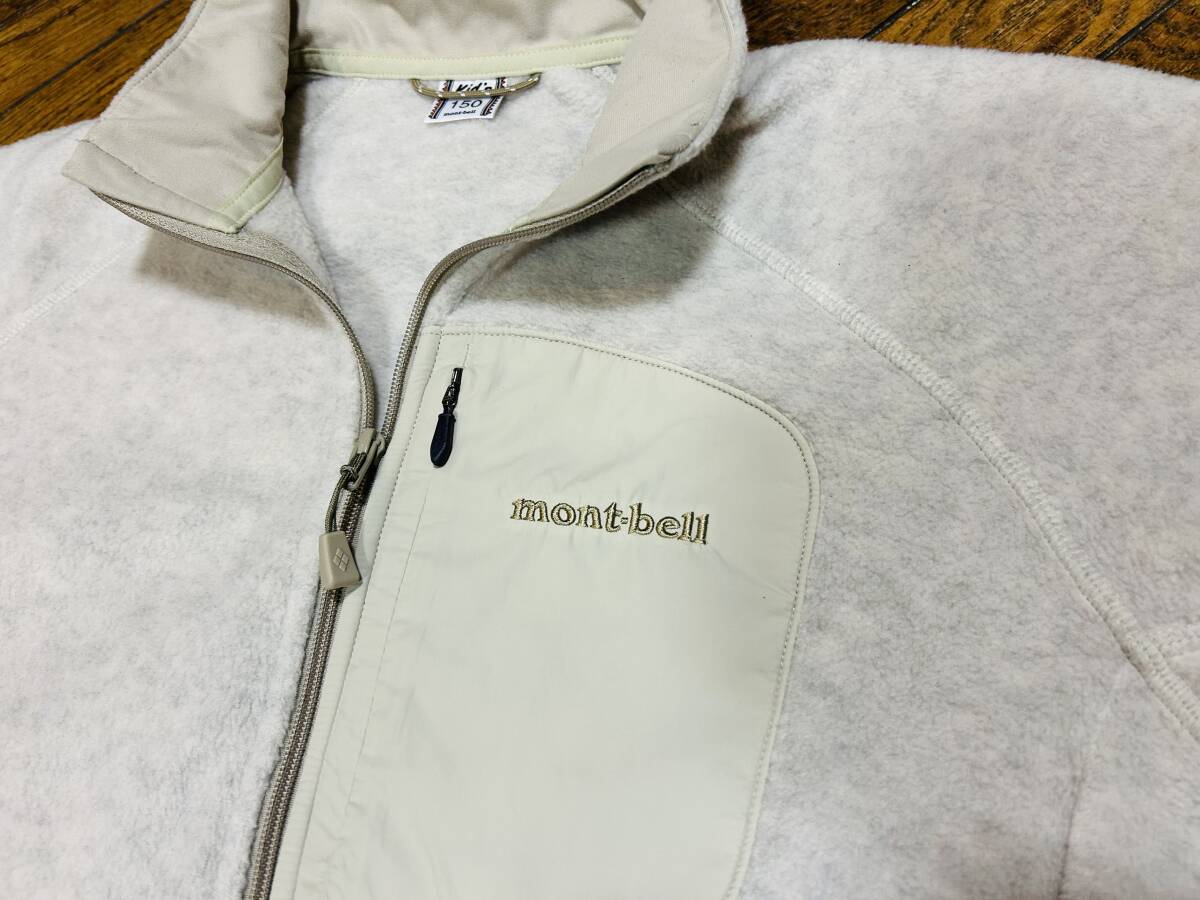 A3314 モンベル mont bell◆フリース ジャケット キッズ150 ベージュ CLIMAPLUS まずまず美品