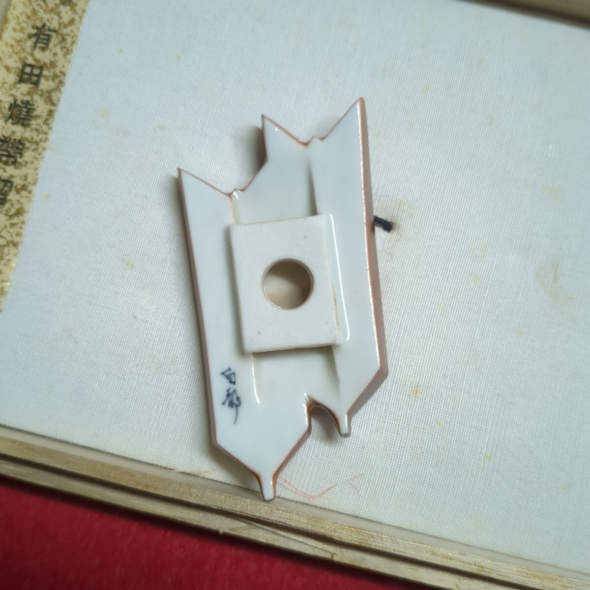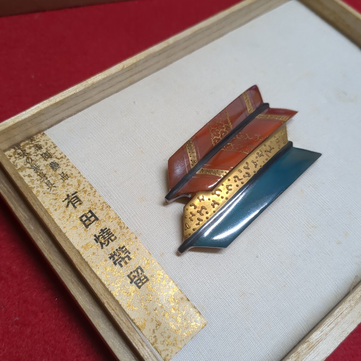 帯留 有田焼帯留 銘有り 矢羽根 陶器 当時物 着物 帯留め 有田焼 金彩 アンティーク