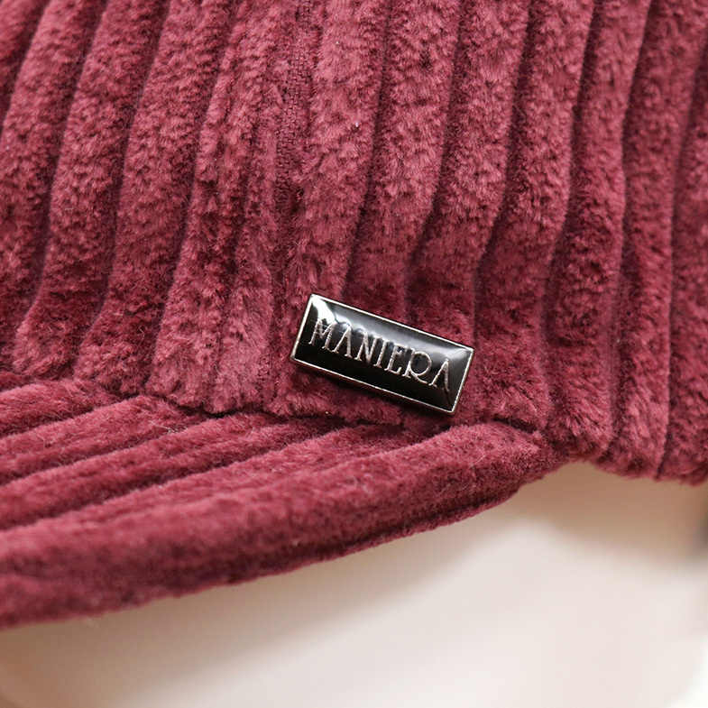 コーディネートに取り入れるだけで季節感の出る、コーデュロイ素材の8パネルキャップ。マニエラの8パネルキャップは、被ると綺麗な形が出る美しいフォルムが魅力です。左サイドのパネルのみコーデュロイの畝の向きを横方向に使用し、さりげなくお洒落な雰囲気を演出。バックルでサイズ調整できるのも嬉しいポイント。裏地はサテンで高級感のある仕上がりです。ロゴピンバッジ付き。