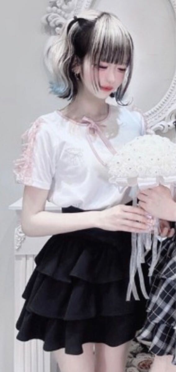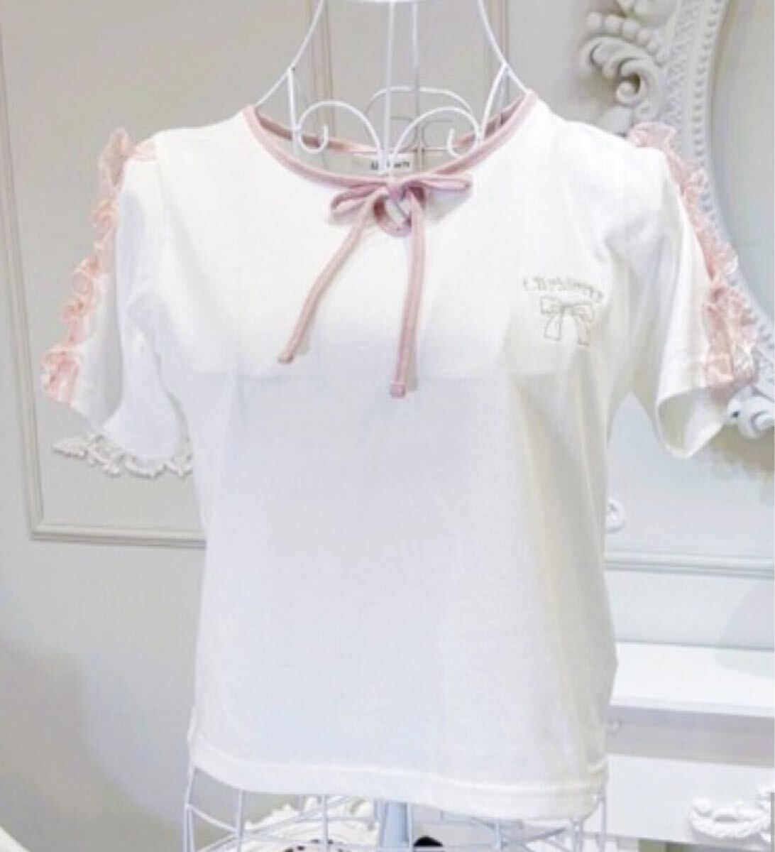 新品 Liii りー レースラインTシャツ 白 LLサイズ クロップド丈 レースとリボンを詰め込んだガーリーT オリジナルロゴ 地雷系 量産型