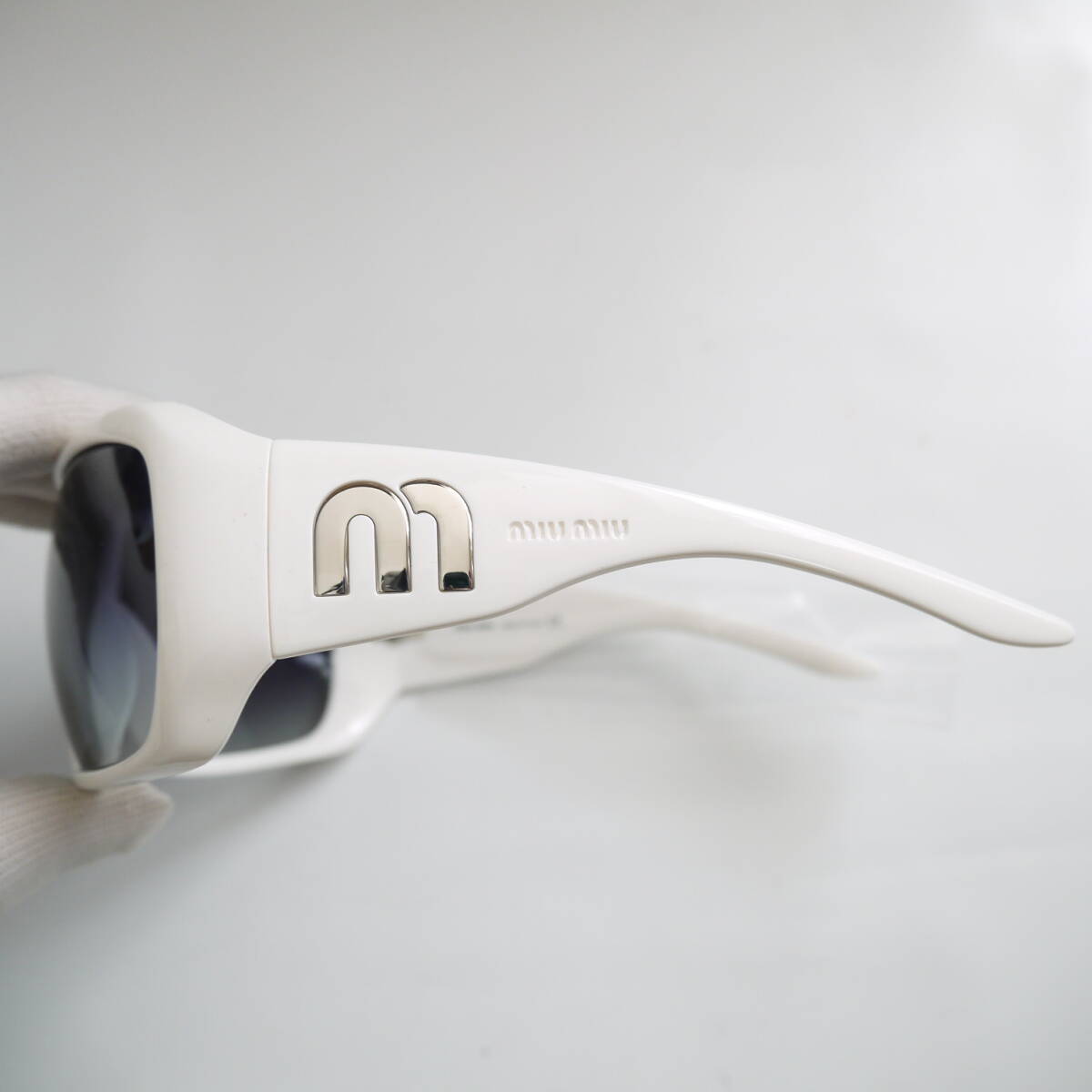 $ 新品 $ ケース付き 激レア♪■ miumiu ■ ミュウミュウ ■ mロゴ入り ■ 眼鏡・ サングラス ■ 白 ホワイト ■ イタリア製■ 送料無料