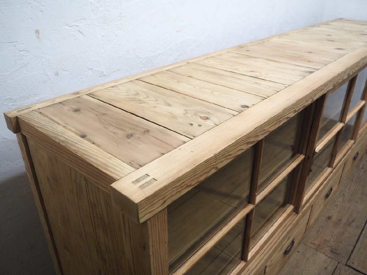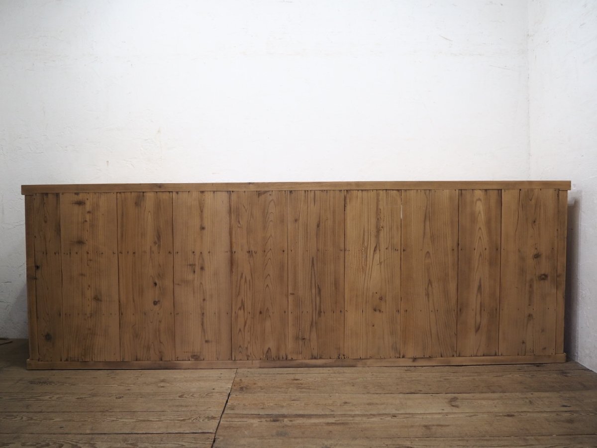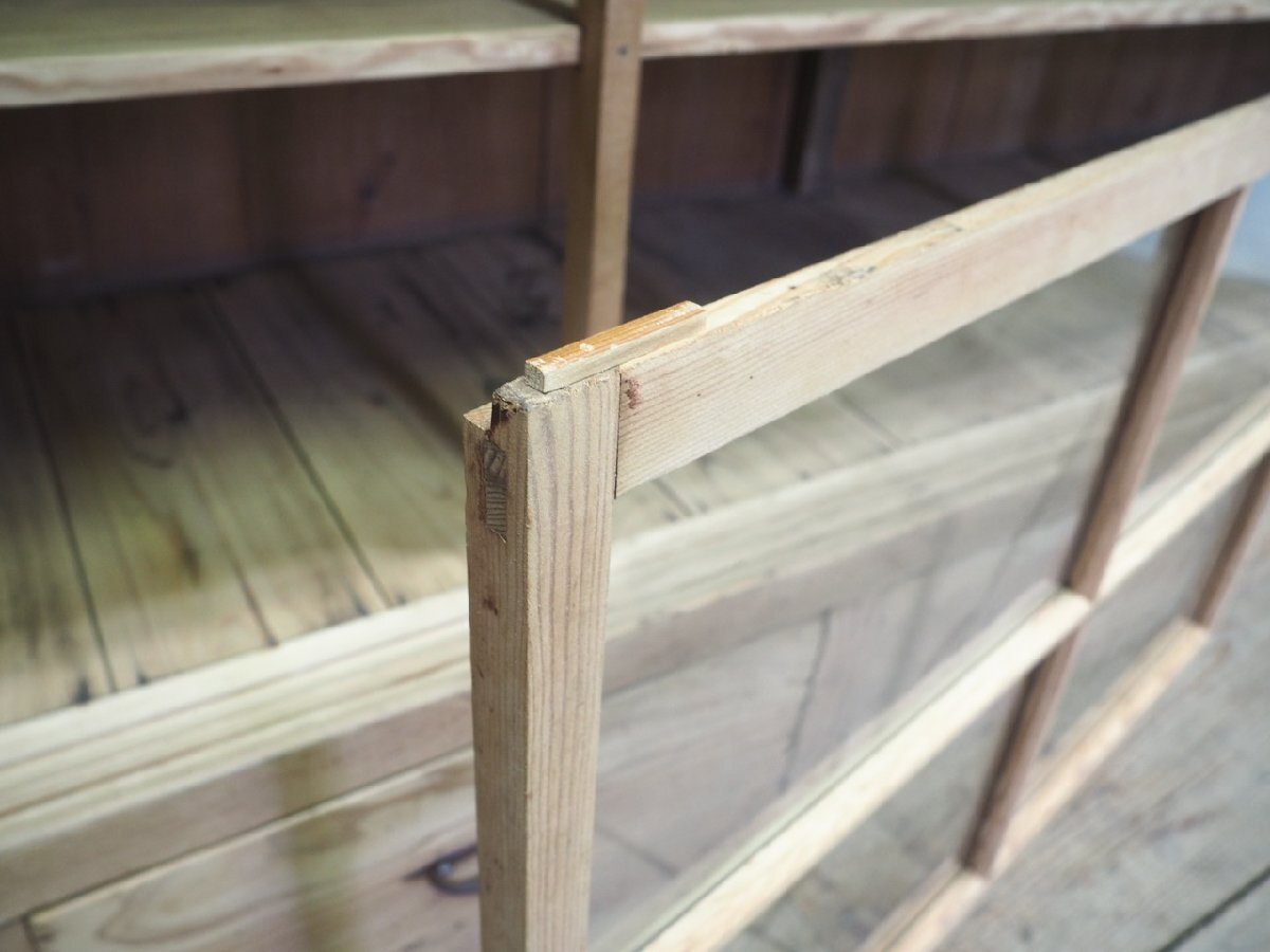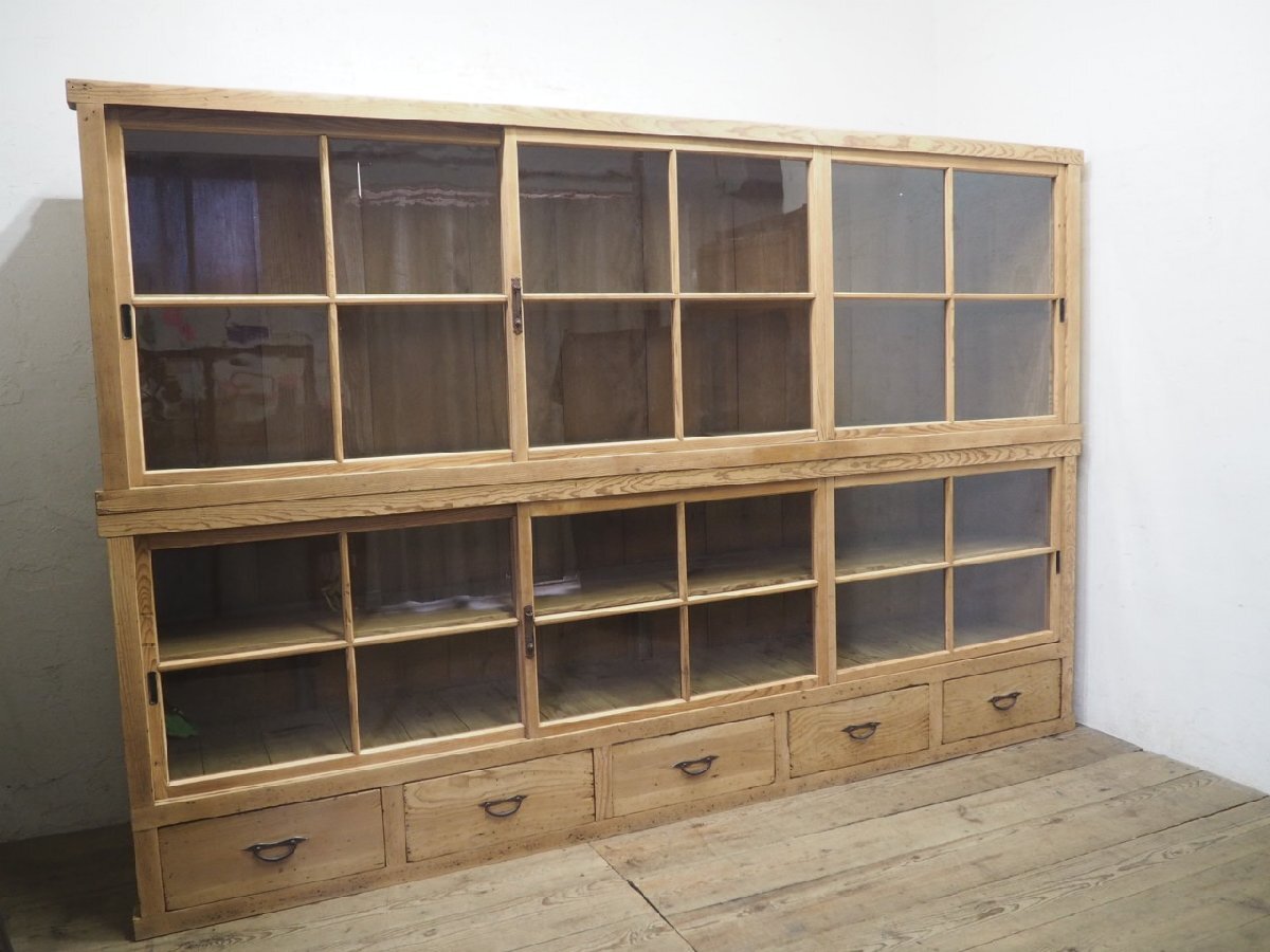タ荷G0599◆②H94cm×W276,5cm◆特大◆アンティーク◆ナチュラルな木味の大きい木製ガラスケース◆飾り棚 収納棚 食器棚 レトロX(ヤG)卸
