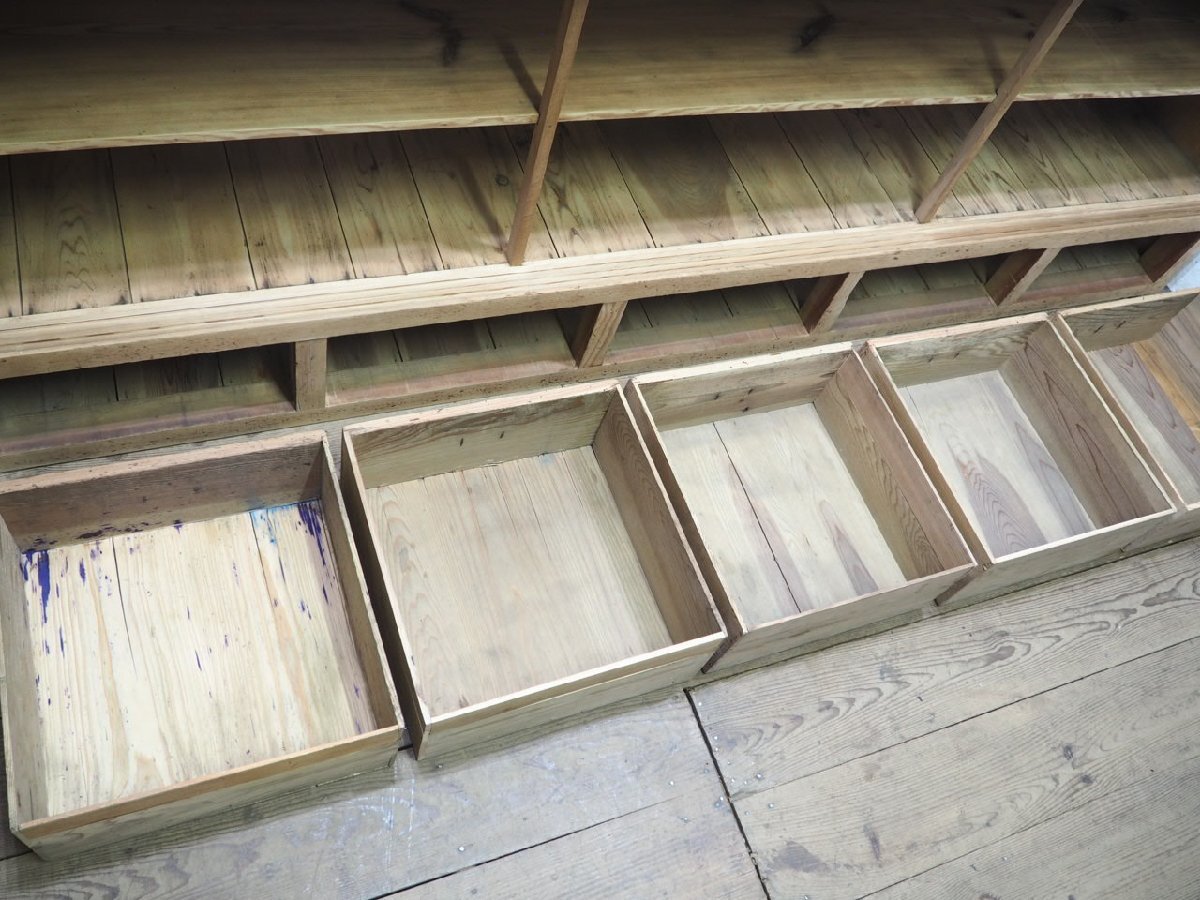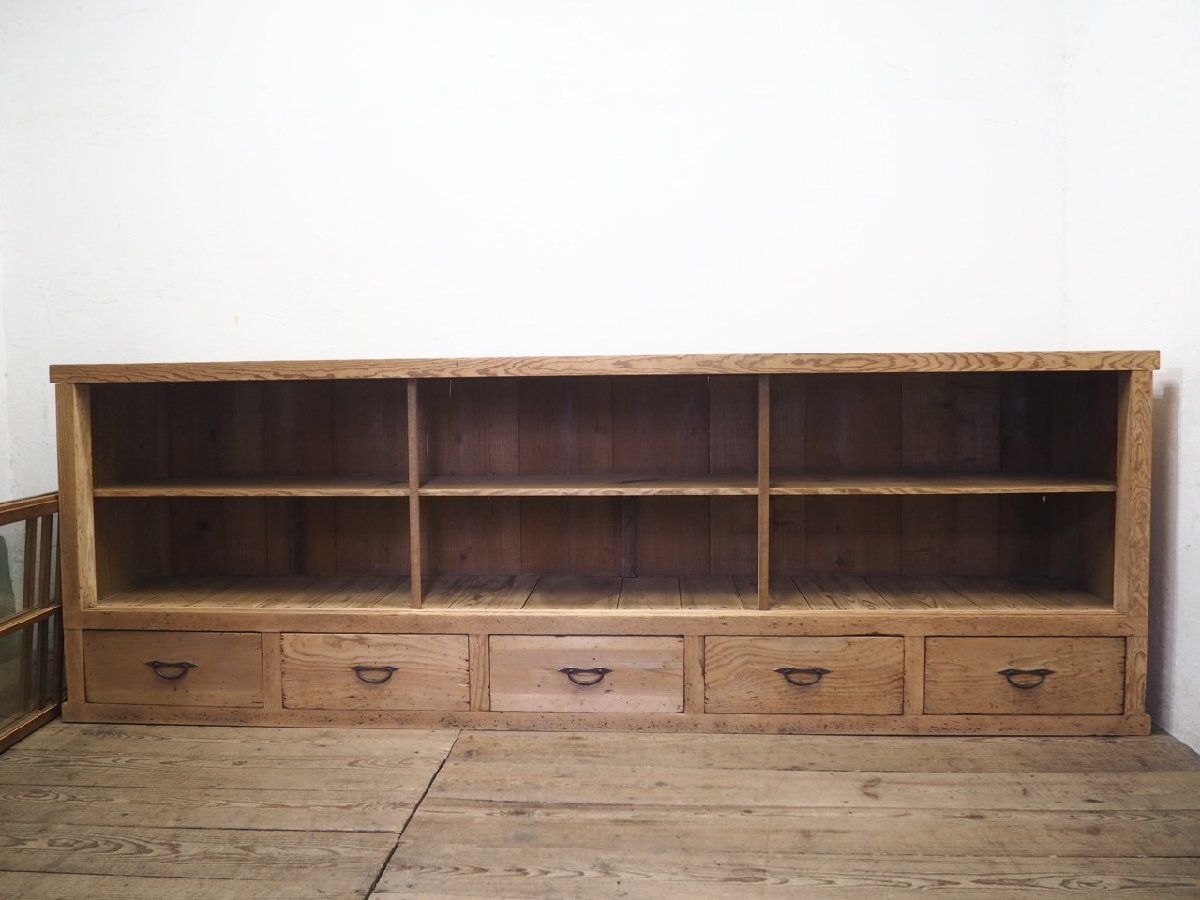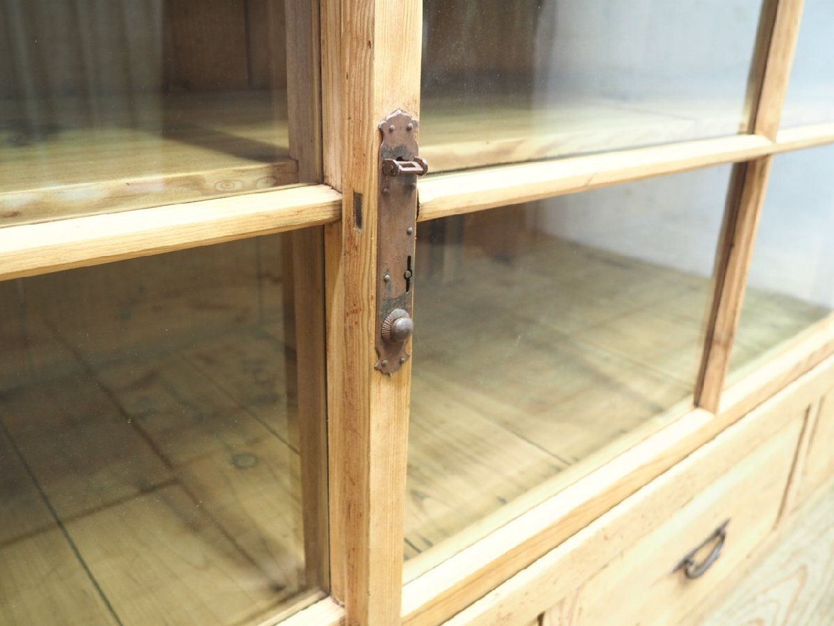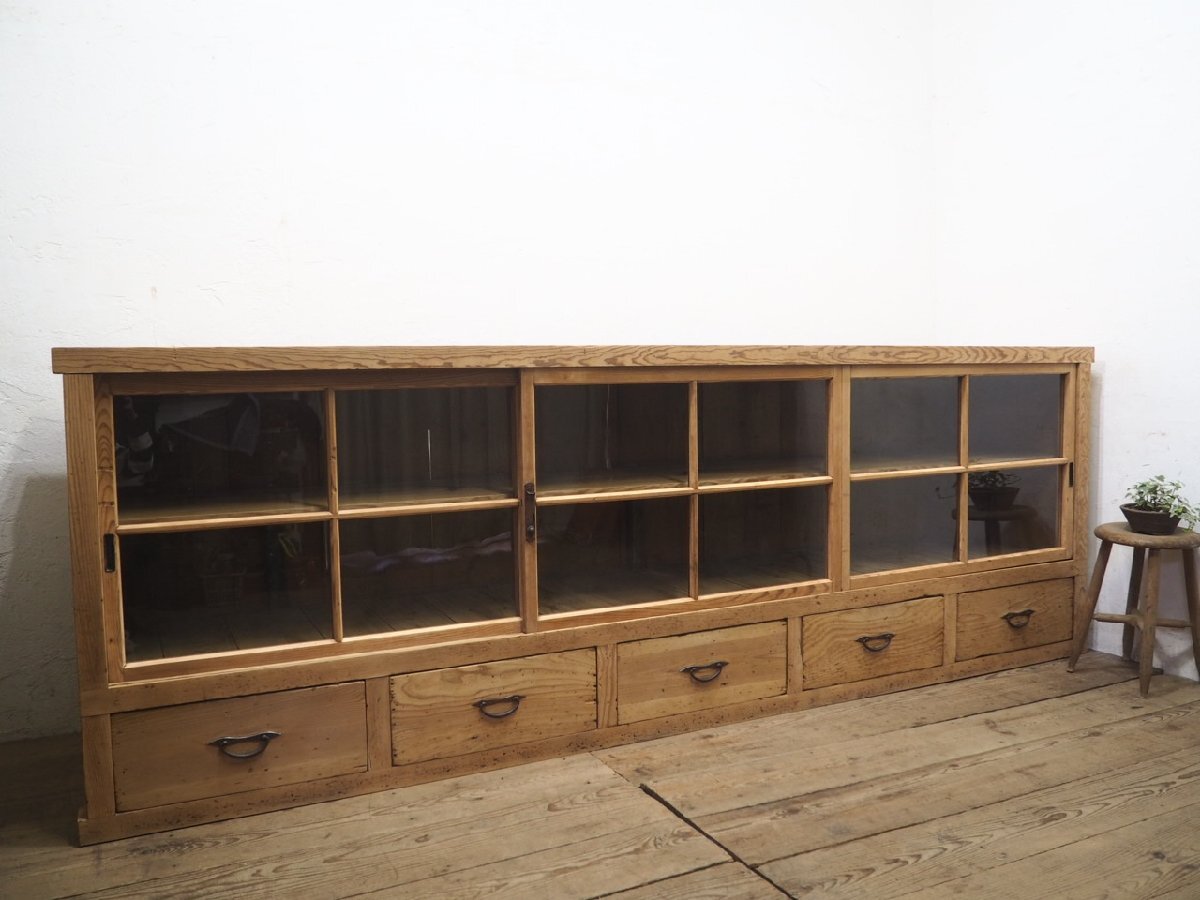 タ荷G0599◆②H94cm×W276,5cm◆特大◆アンティーク◆ナチュラルな木味の大きい木製ガラスケース◆飾り棚 収納棚 食器棚 レトロX(ヤG)卸