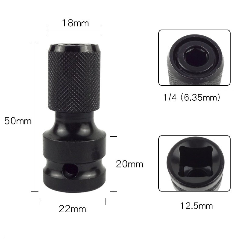 1/2インチの四角メスコネクタを1/4インチの六角メスコネクタに変換できます。