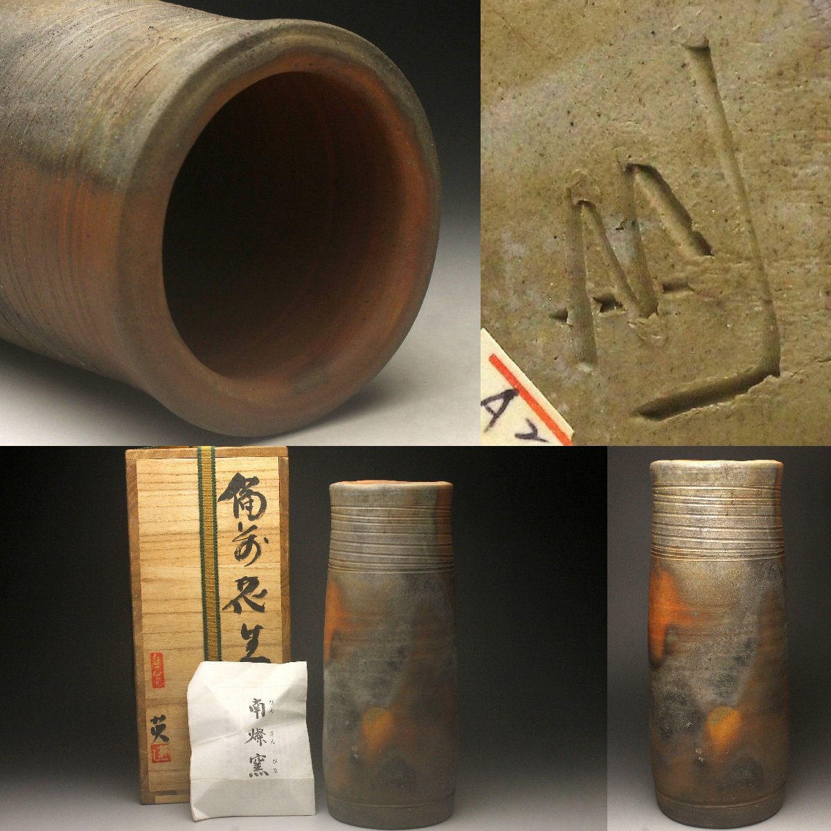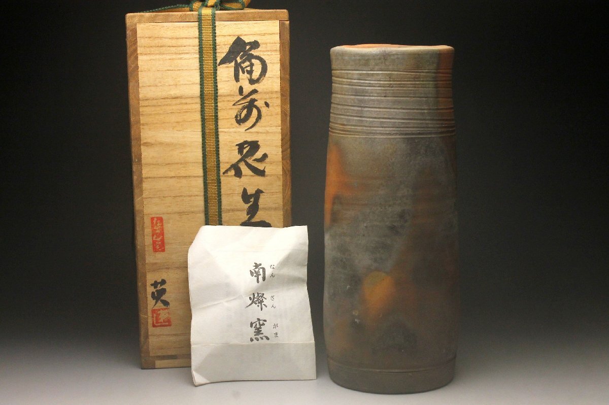 【余韻】 備前焼 南燦窯 森本英助 花瓶★華道具 無傷美品 栞 共箱<同梱可>