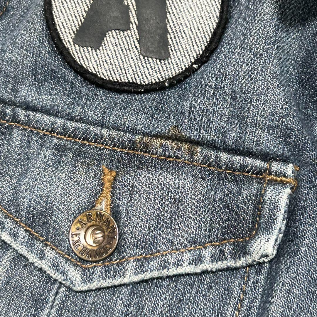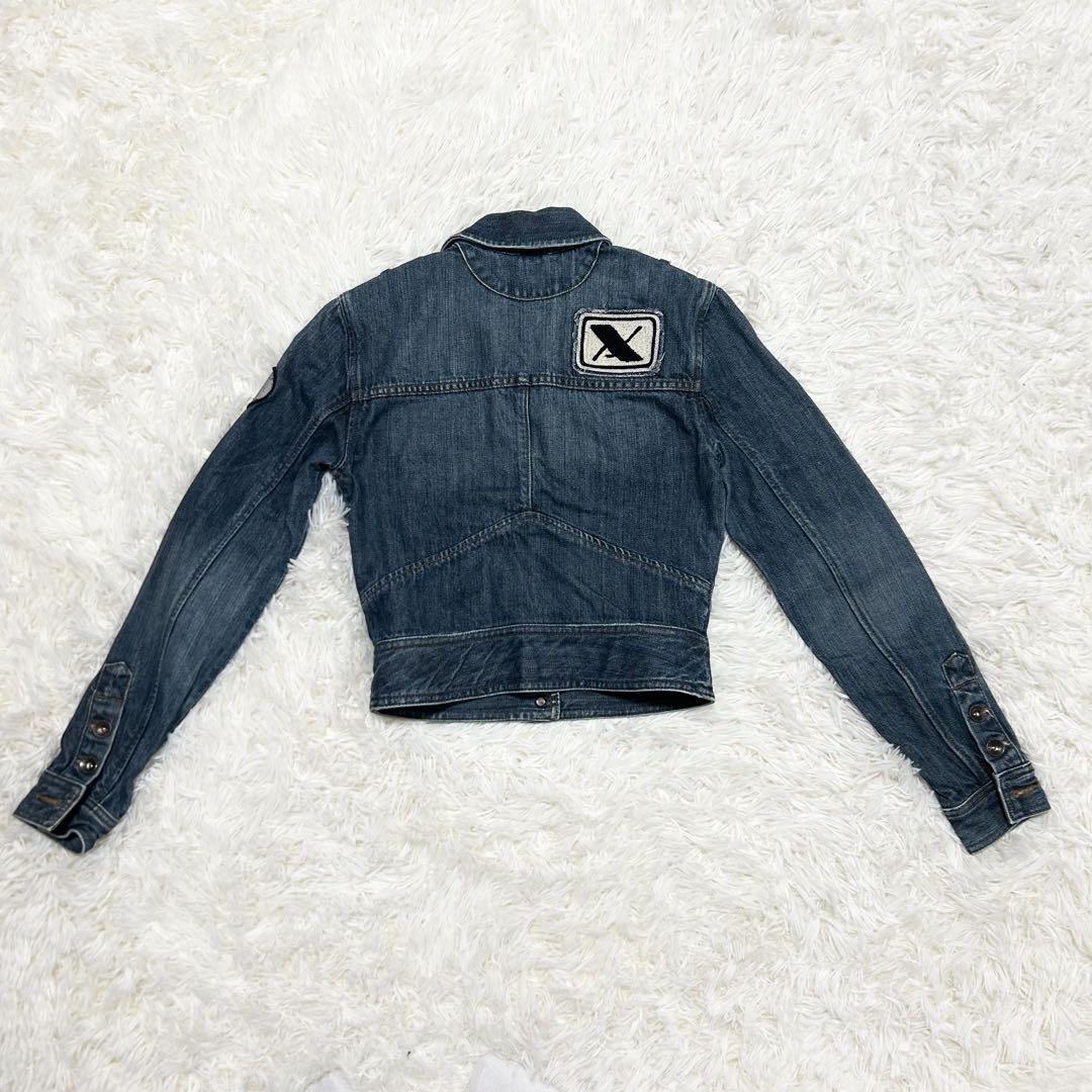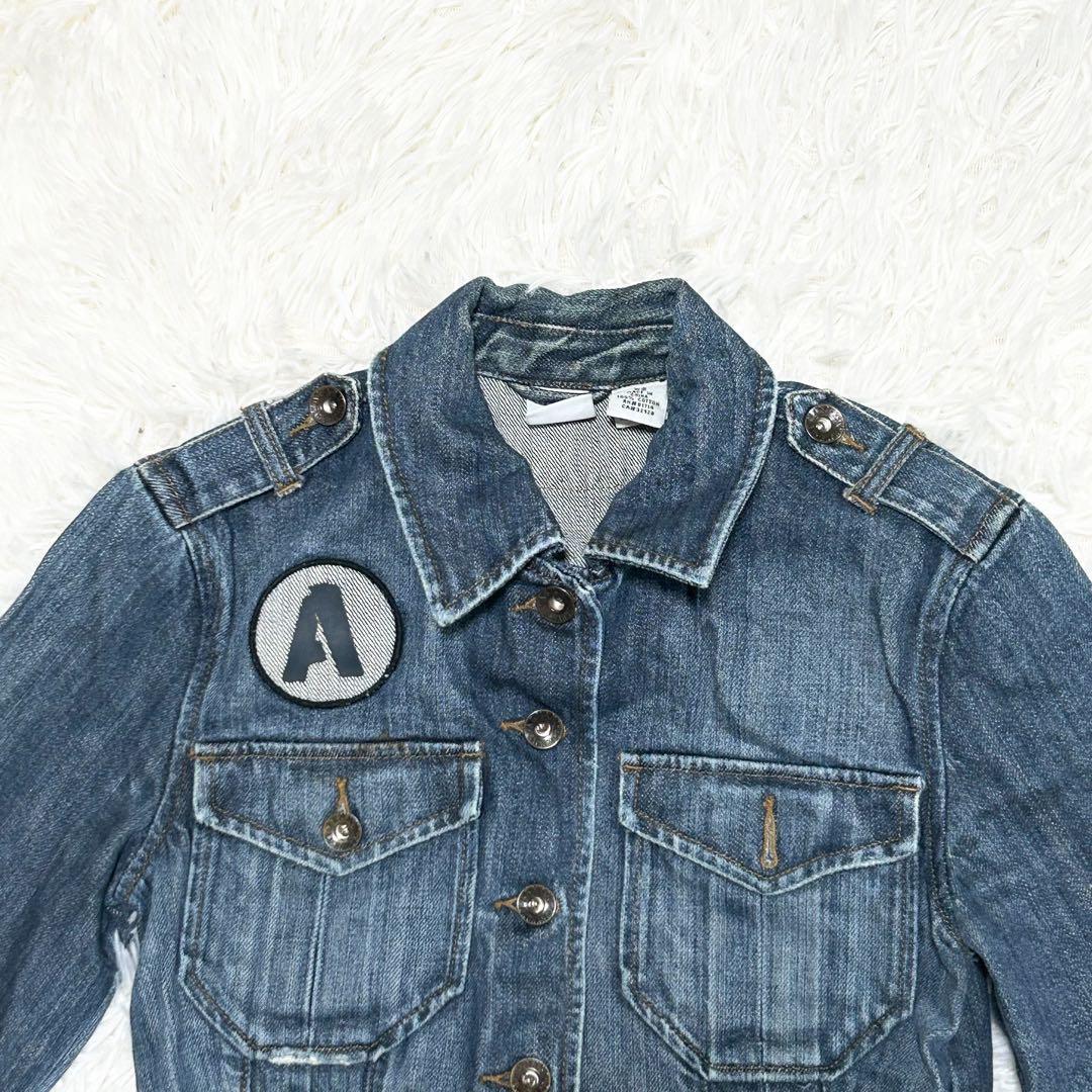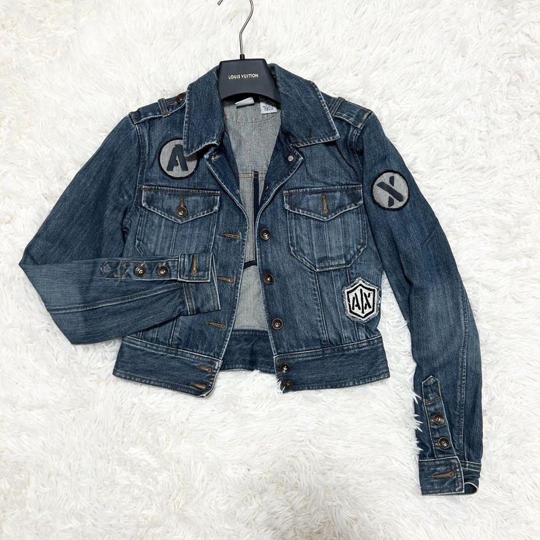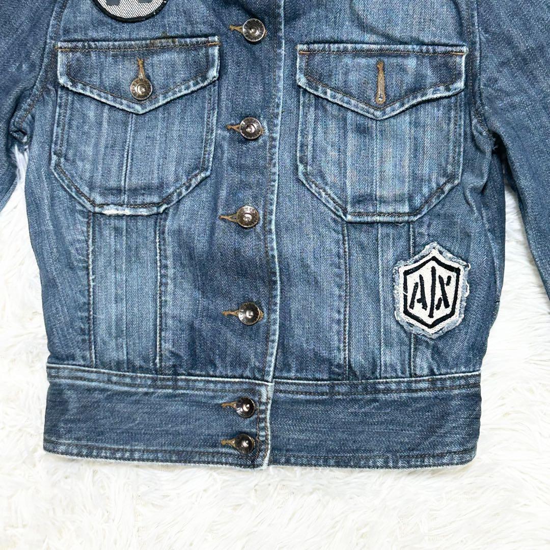 ARMANI EXCHANGE アルマーニエクスチェンジ デニムジャケット ワッペン XS S レディース ブルー Gジャン スリム ショート丈