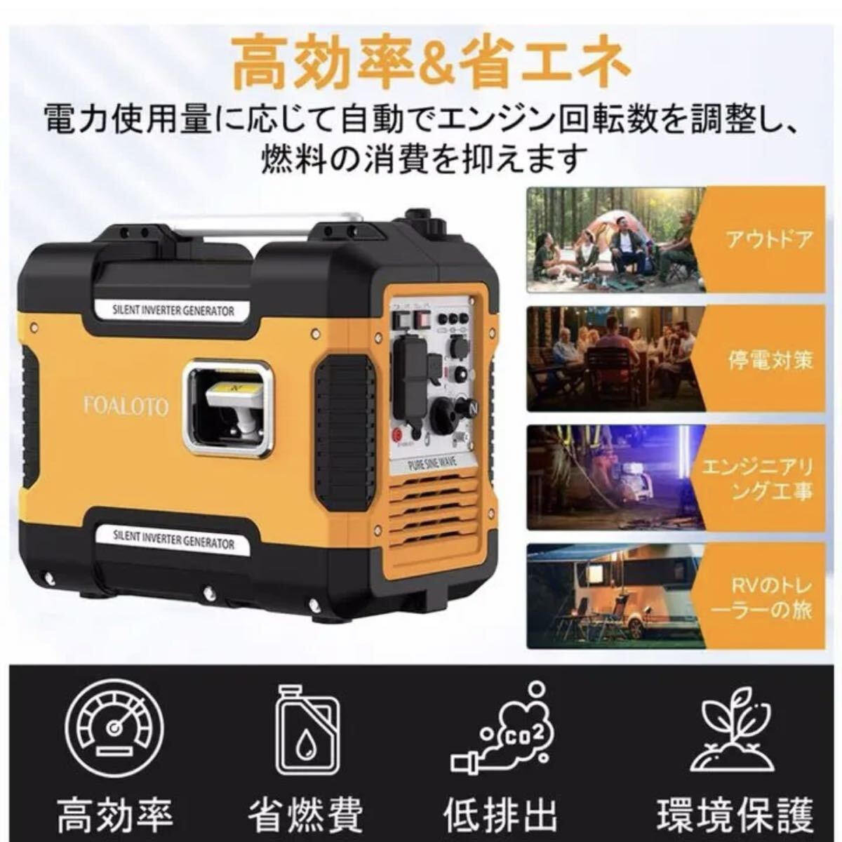 FOALOTO 発電機 インバーター 防音型 正弦波 最大出力1.88KVA 100V 50Hz/60H切替 過負荷保護 USB出力 地震 台風 防災 停電対策 キャンプ アウトドア 非常用電源