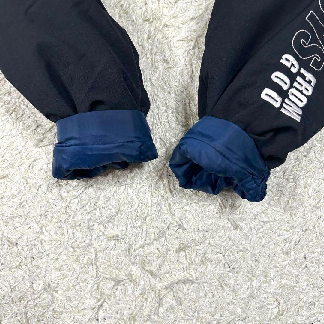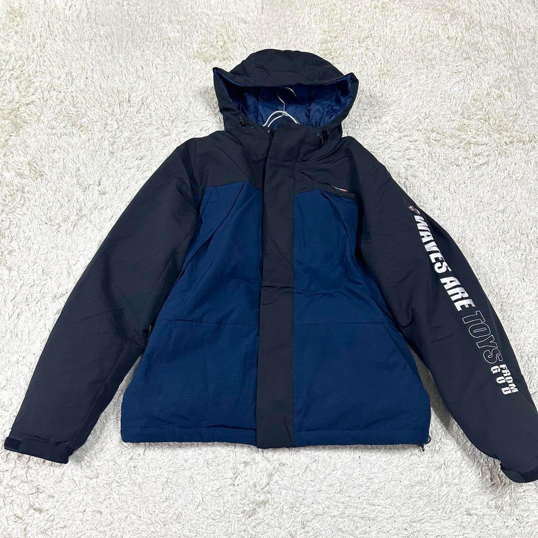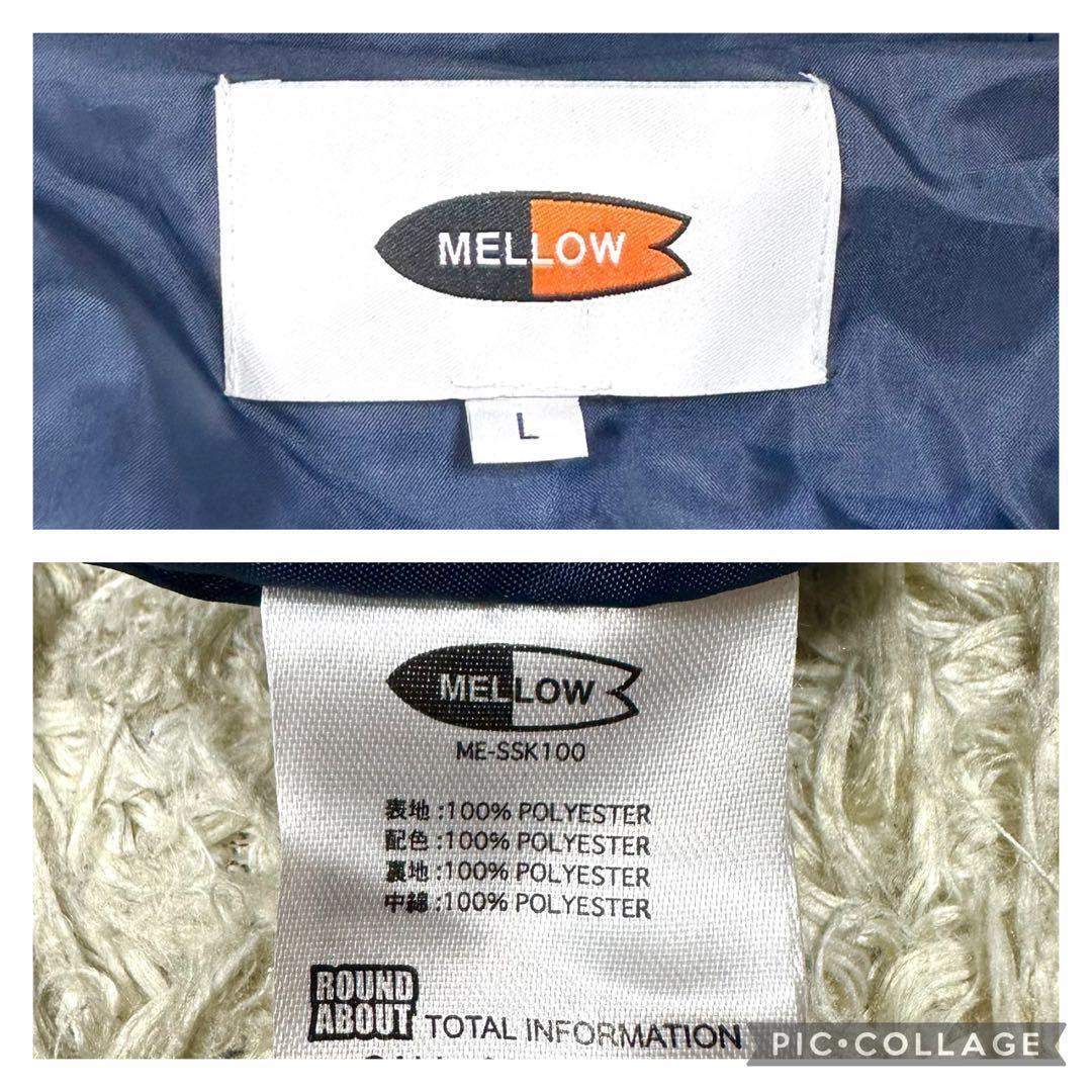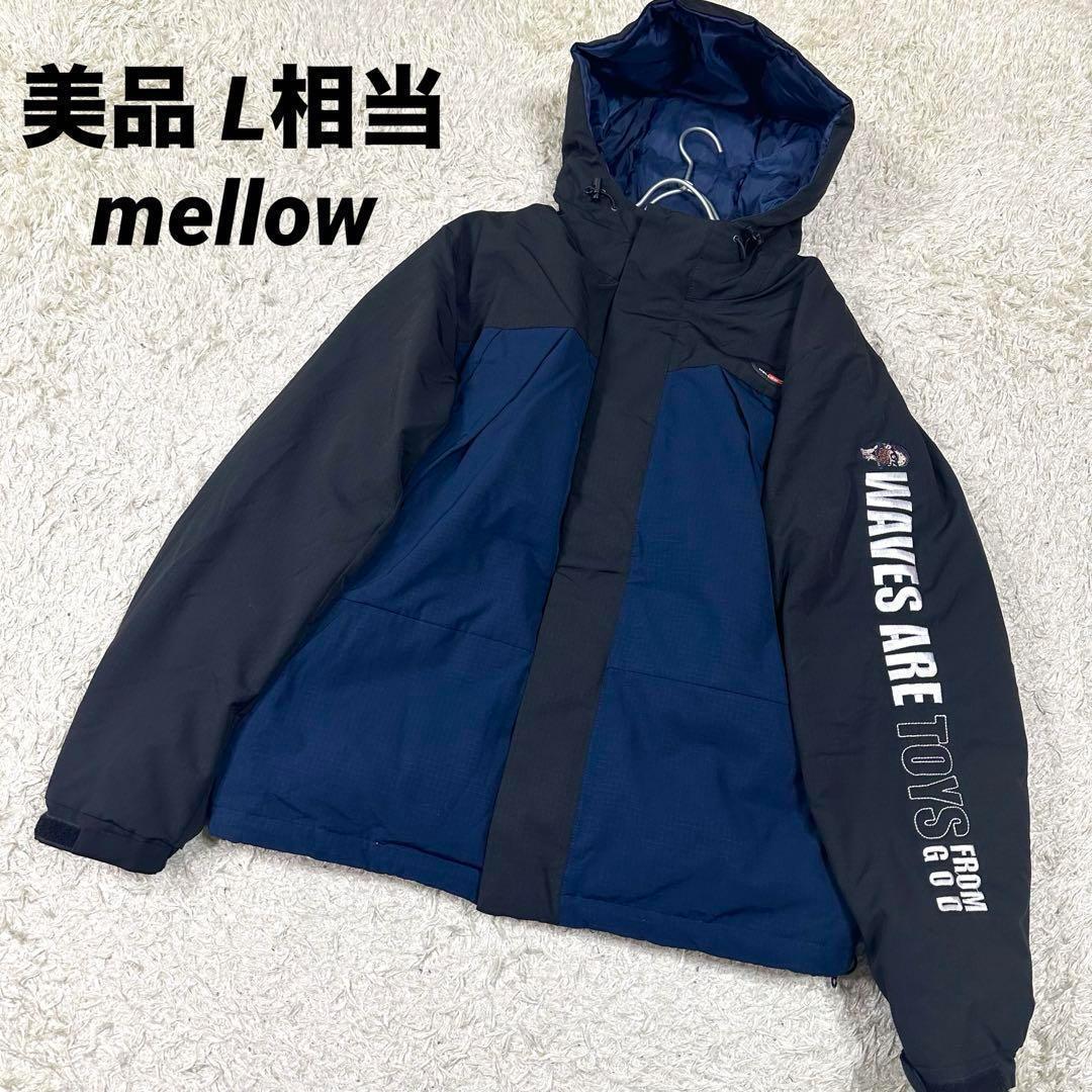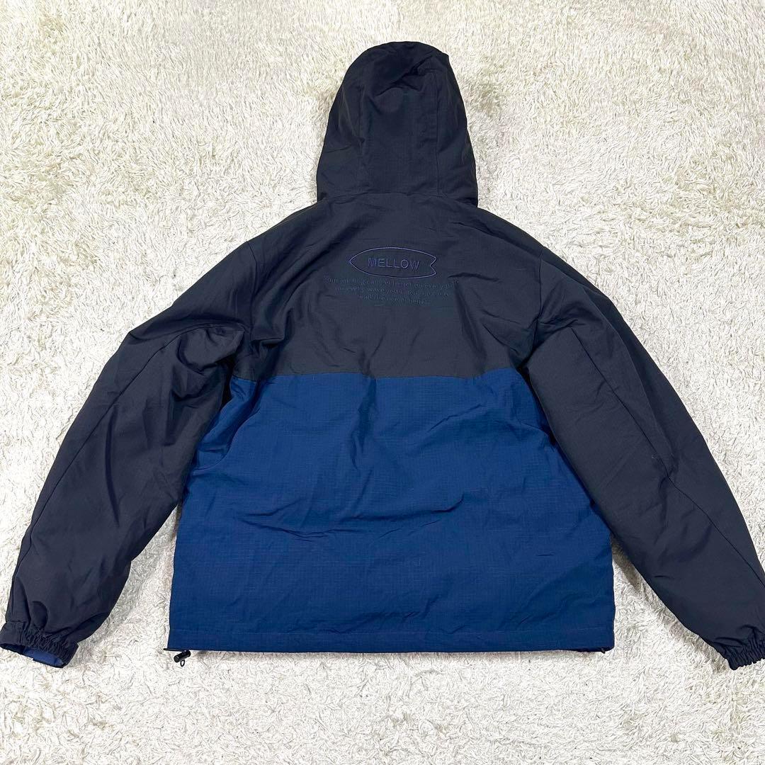 【美品】mellow メロー メロウ ジャケット 皇治 ブルゾン フード付き 着脱不可 サイズL バイカラー ブラック 黒 ネイビー 紺色 ドロスト 刺繍 ジップアップ ジャンバー