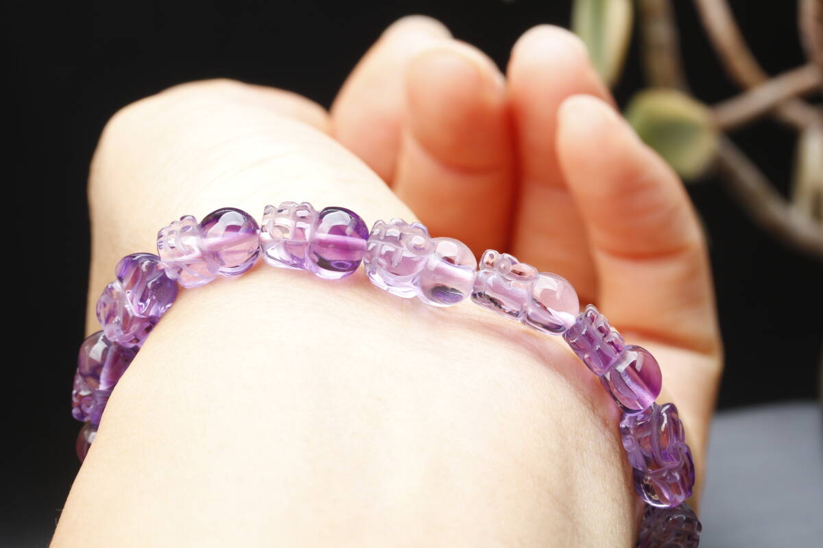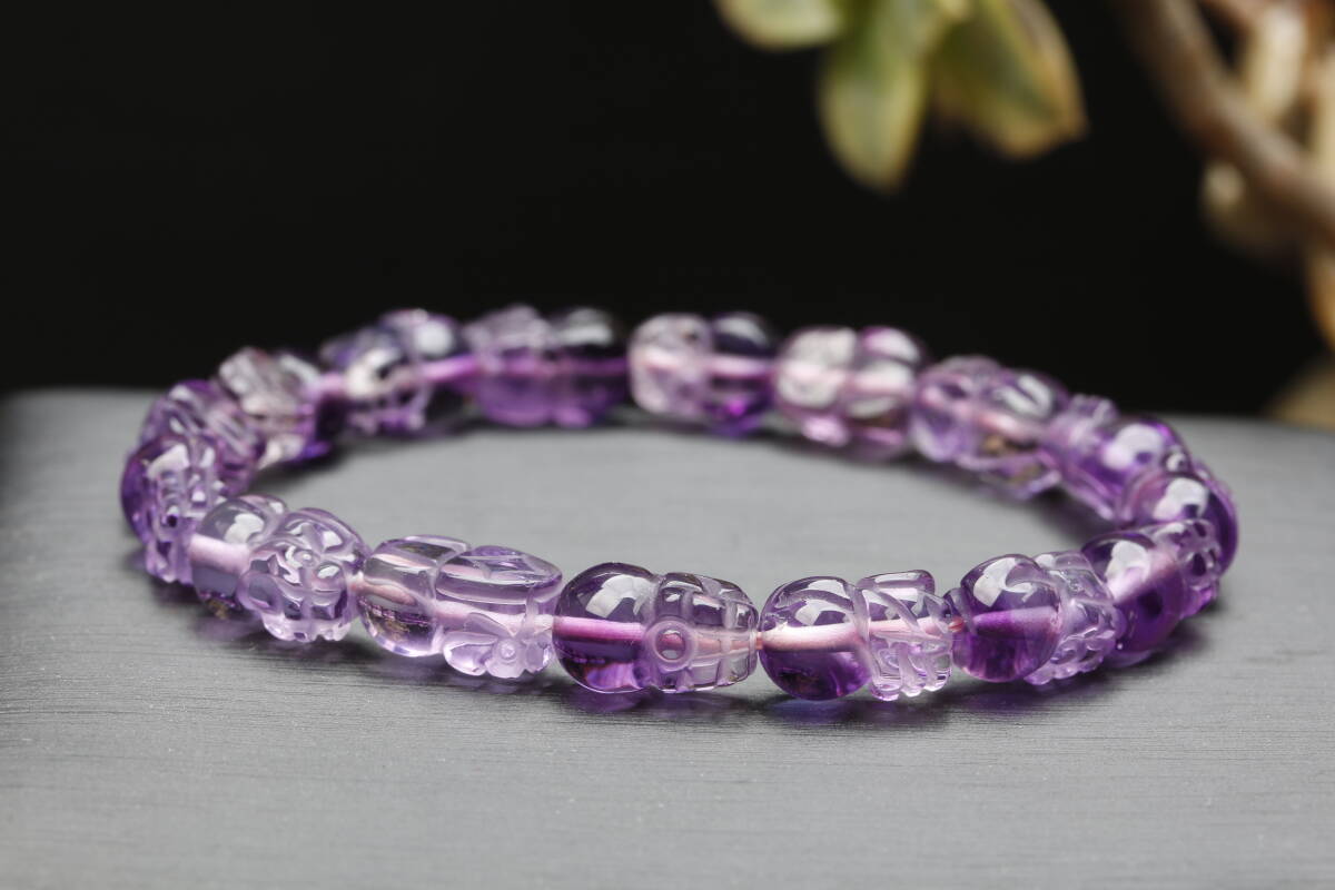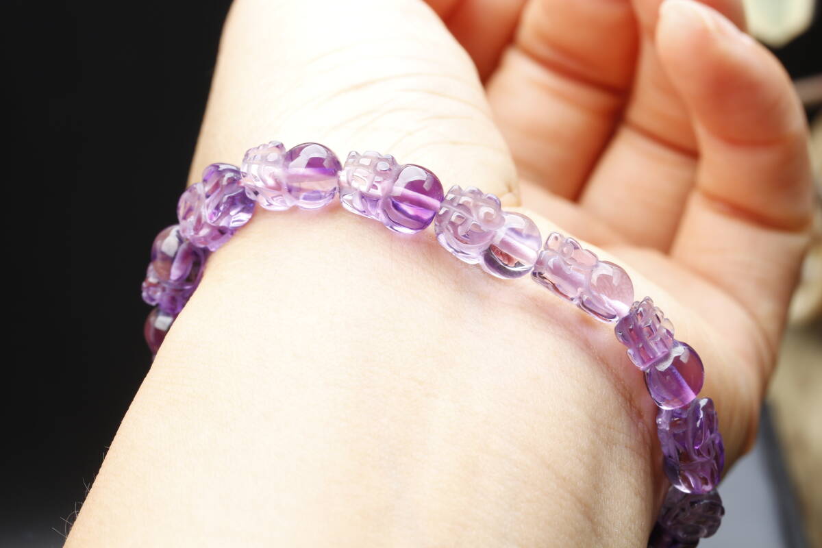 AAAAA級 アメジスト 豼貅 ブレスレット手彫り(ヒキュウ)★[金運UP] 天然紫水晶 2月の誕生石 パワーストーン 強力エネルギー【zpxsl-4】 | |