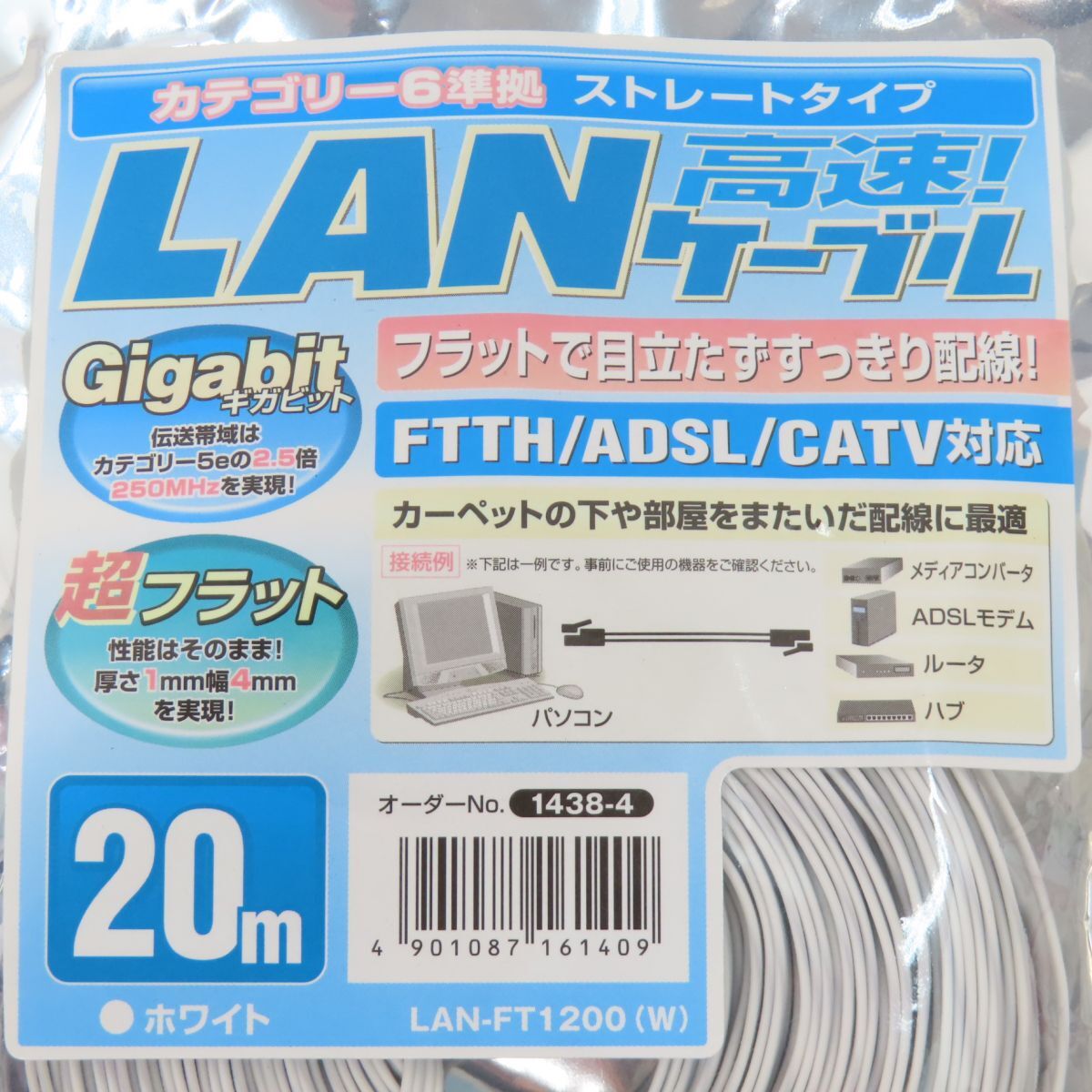 106 【未開封】ELPA エルパ フラット LANケーブル カテゴリ6 20m 8極8芯用 ホワイト LAN-FT1200(W) □内容品:完品 □JAN:4901087161409 □状態 ・未開封です。 開封された形跡が見られない為、未開封と判断しております。 ・外袋には保管に伴う擦れ、キズ、ヨゴレ、シワなどのダメージがあります。 ラベルに色褪せが見られます。 □備考:なし ※画像では判別しづらい薄い汚れや薄いキズ、細かいキズなどある場合があります。 |