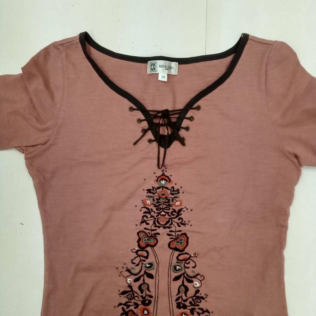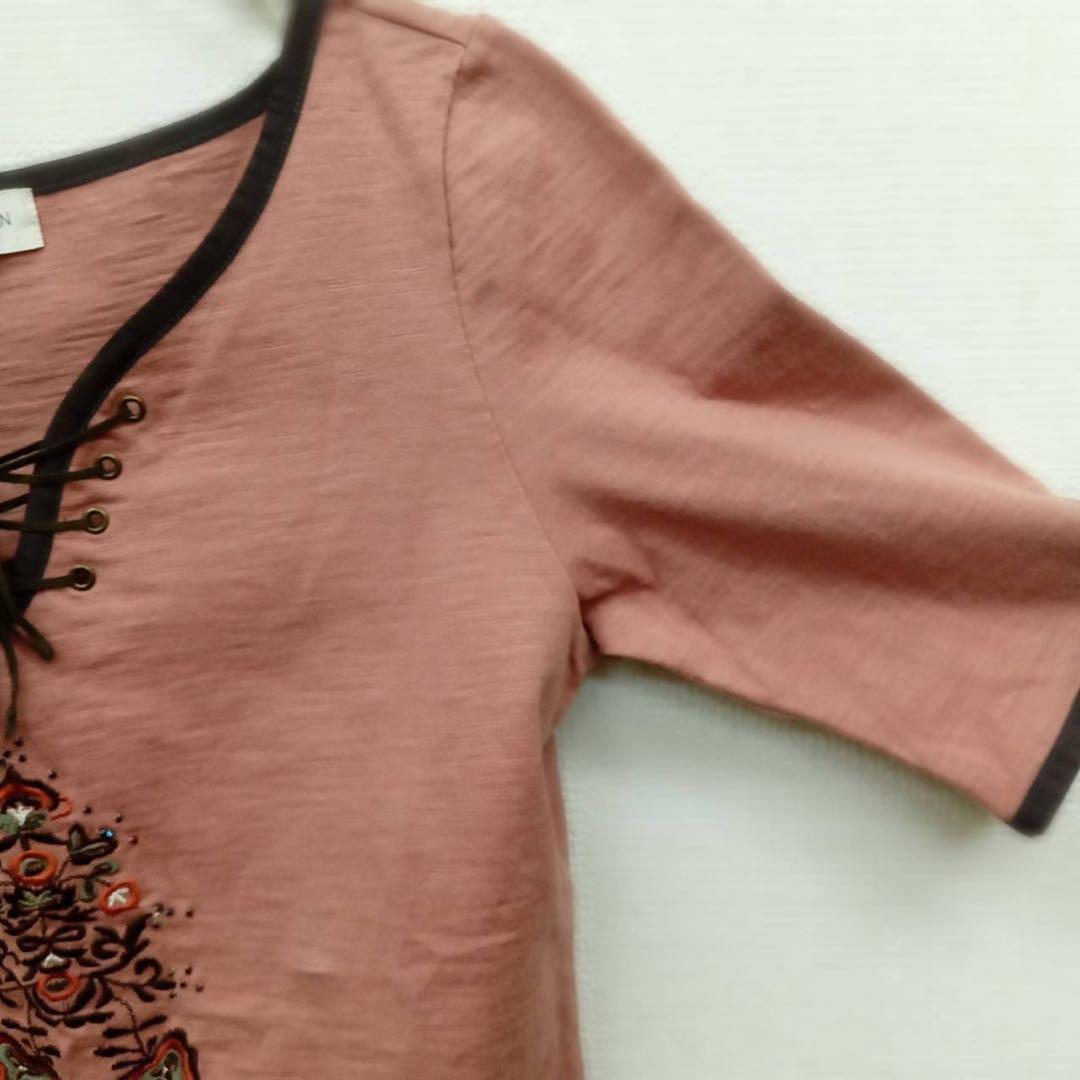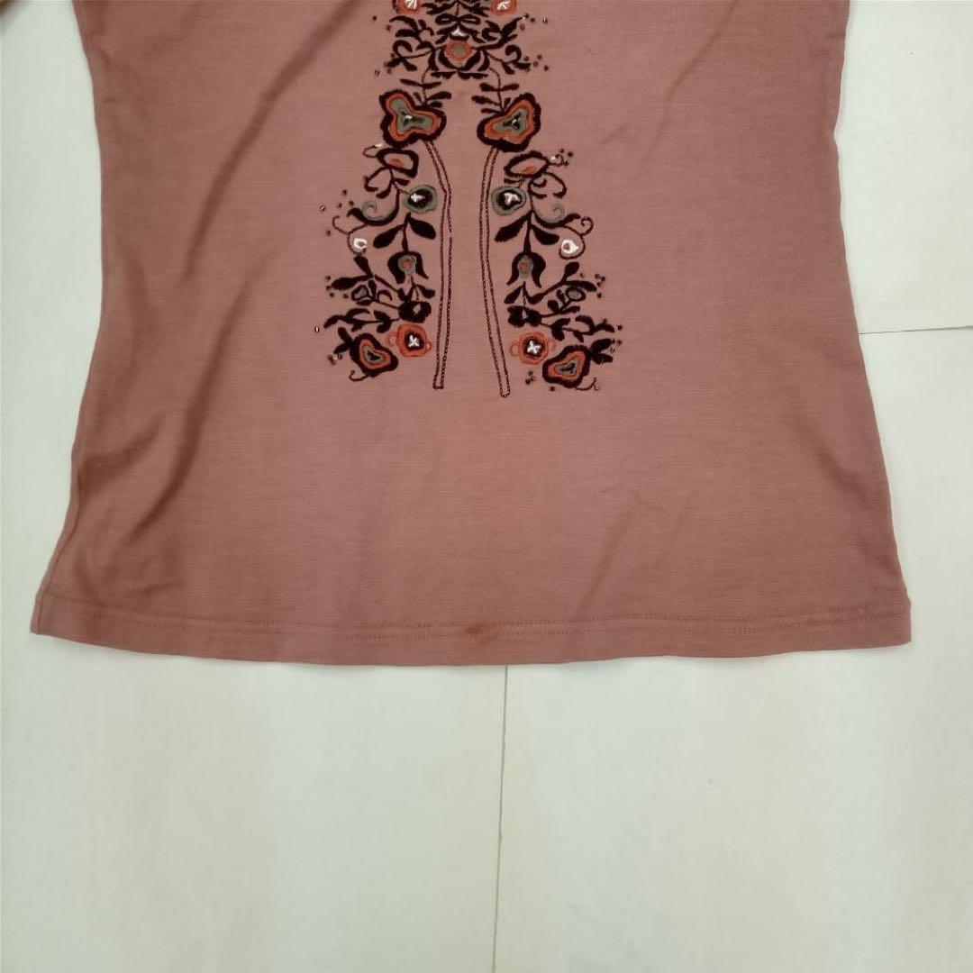 ミッシェルクラン(38)花柄刺繍カットソー*オープンフロントネック*綿100%