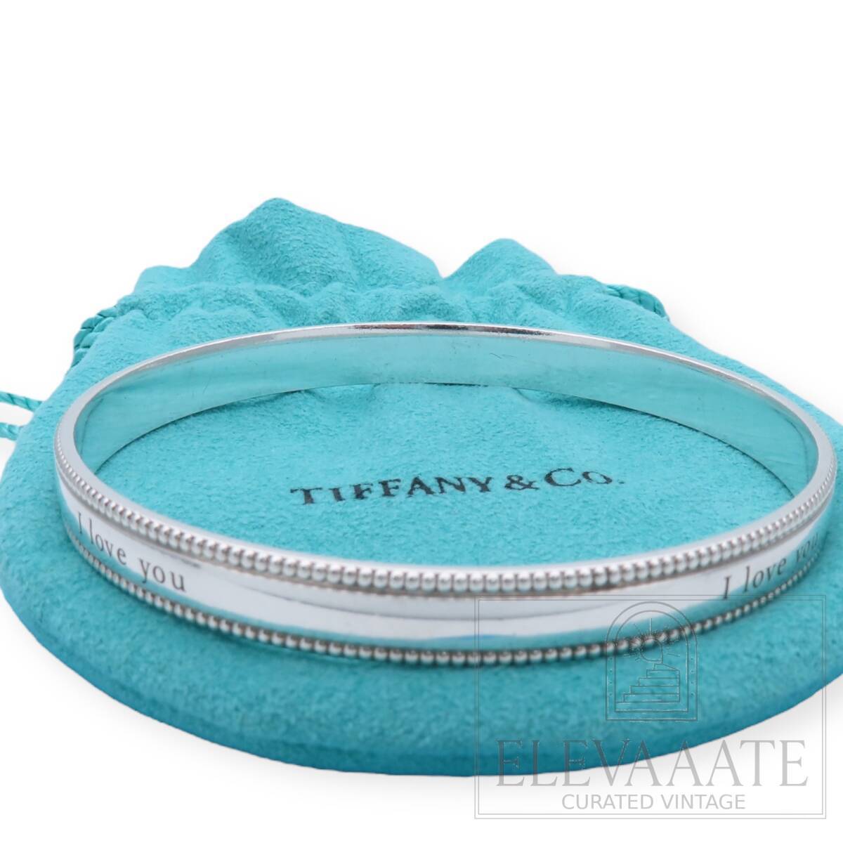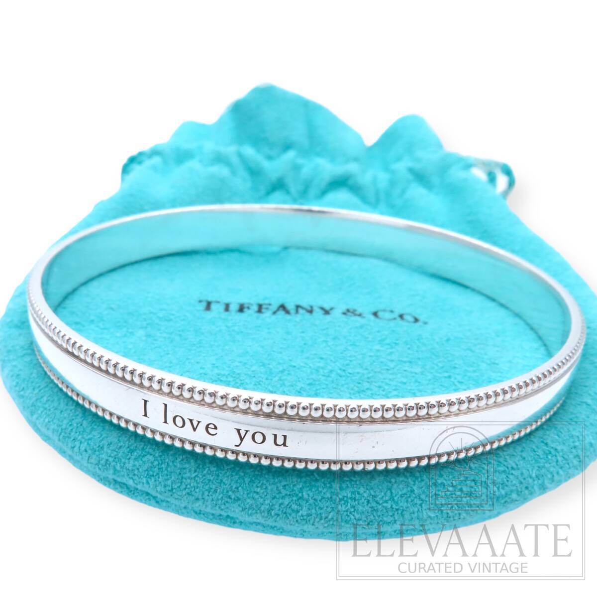 希少 美品 Tiffany&Co. ティファニー ミルグレイン I Love you シルバー バングル SV925 TO42
