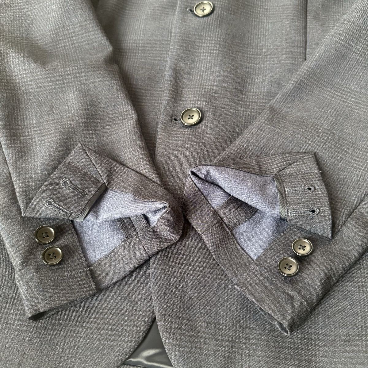 スタンダードな二つボタンにセンターベント、袖口は本開きの高い品質は、ビジネス、カジュアルと幅広くご利用いただけると思います。