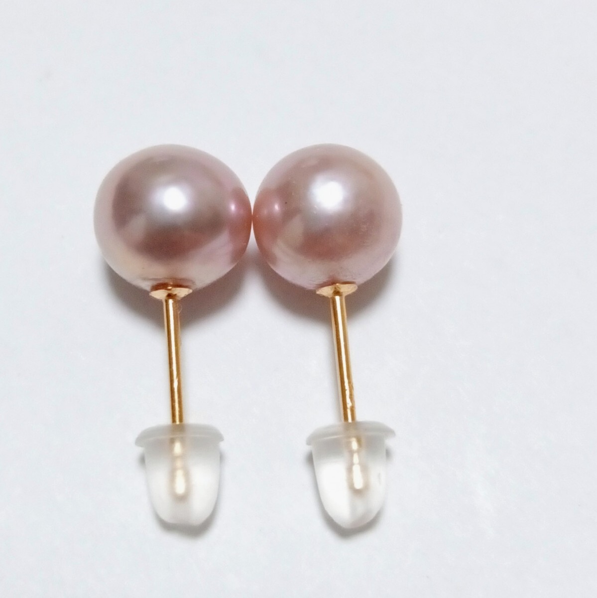 色、照り、巻きも抜群のパープル淡水パールのピアスです。