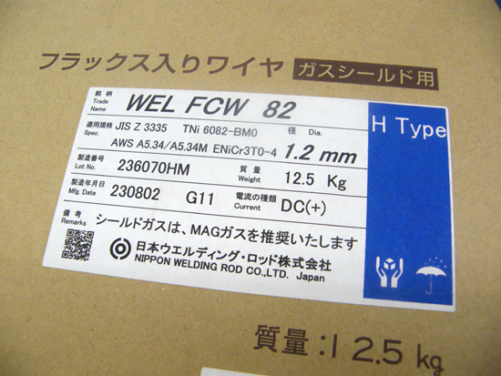 未使用 フラックス入りワイヤ ガスシールド用 WEL FCW 82 1.2mm 12.5g H Type 日本ウェルディングロッド 札幌市 厚別区