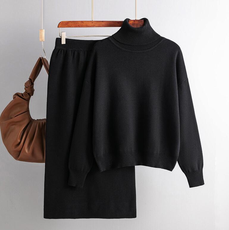 343 パンツスーツladiesレディース ◇ ニット素材    カジュアル 上質  防寒  タートルネック  ブラック