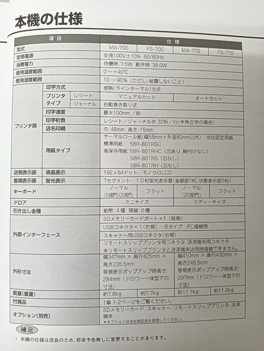 商品名 :TEC/電子レジスター / MA-770/shallot/ 店舗什器/ 東芝テック/説明書付き