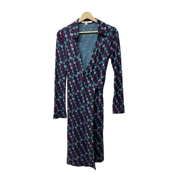 ダイアン・フォン・ファステンバーグ DIANE VON FURSTENBERG(DVF) サイズ4 S - パープル×ブルーグリーン×ライトブルー レディース