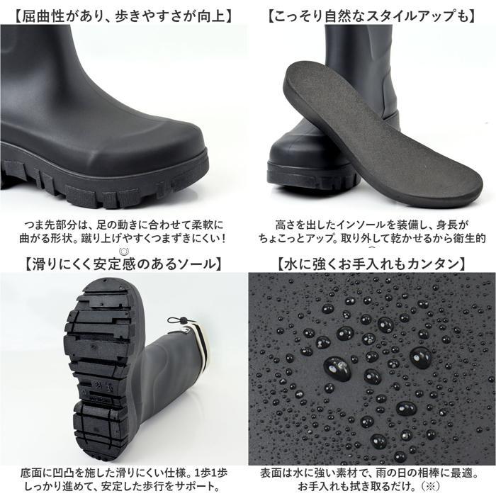 | 商品説明 | ・・【雨の日もおしゃれにお出かけ】 ・憂鬱な日も、お気に入りのアイテムで楽しく☆「レディース用ロングレインブーツ」。 ・【ヘビロテ確定のベーシックデザイン】 ・無地カラーに、フロントラバータグがアクセント。気軽に使えるレインブーツ。 ・【自分サイズに心地よくフィット】 ・スッと足入れしやすい履き口設計。履き口のコードをキュッと絞って調節、雨の侵入もガード。 ・【しっかりカバーできるロング丈】 ・膝下あたりまですっぽり覆えるロングブーツ。雨の強い日や、アウトドアシーンでも安心。 ・【色んなスタイルに素敵にマッチ】 ・ショートパンツやミニスカートと合わせて、足元すらり。パンツインもOK。 ・【屈曲性があり、歩きやすさが向上】 ・つま先部分は、足の動きに合わせて柔軟に曲がる形状。蹴り上げやすくつまずきにくい! ・【こっそり自然なスタイルアップも】 ・高さを出したインソールを装備し、身長がちょこっとアップ。取り外して乾かせるから衛生的◎ ・【滑りにくく安定感のあるソール】 ・底面に凹凸を施した滑りにくい仕様。1歩1歩しっかり進めて、安定した歩行をサポート。 ・【水に強くお手入れもカンタン】 ・表面は水に強い素材で、雨の日の相棒に最適。お手入れも拭き取るだけ。 ・(※)完全防水ではありません。 |