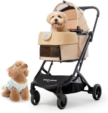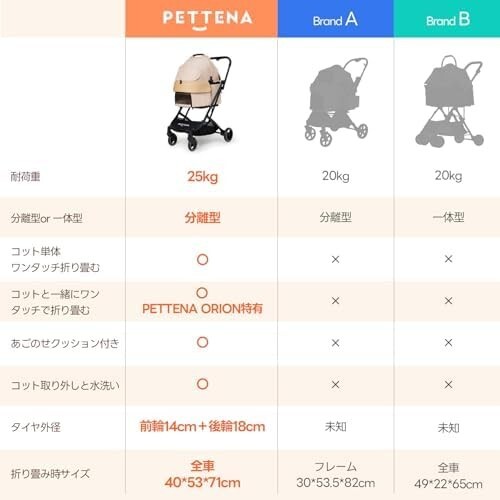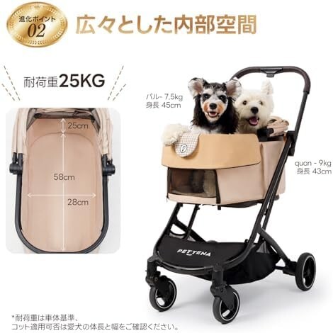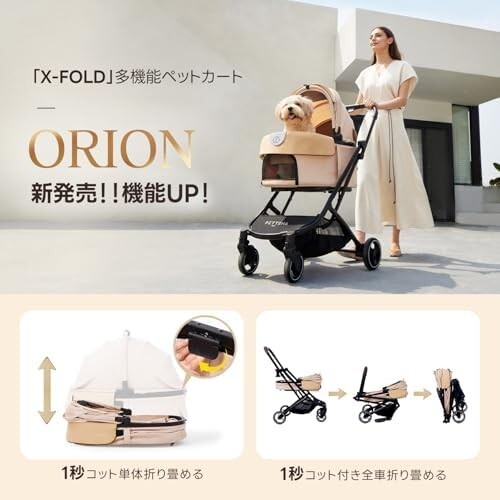 【最新の1秒コット付折り畳み】PETTENA ペットカート 小型犬 分離型 犬カート 耐荷重25kg 「X-FOLD」技術 キャリーコット付ワンタッチ折り畳み 広い空間 自立可能 軽量 犬バギー お出かけ用 猫 犬ベビーカー PETTENA ORION(ベージュ)
