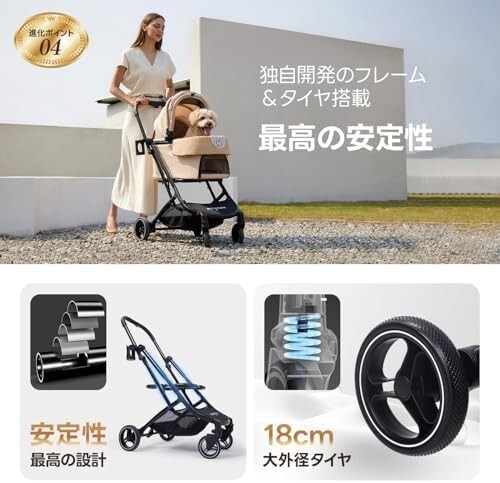 ??【EN1888基準適合&抜群の安定性】PETTENA ORIONペットベビーカーは、世界一番厳しいベビーカーのEN1888基準に準拠し、72000回の耐久性テストを通過した高品質な製品です。さらに、25kgまでの耐荷重テストも実施済みで、強力なブレーキシステムと安全設計により、大切なペットをしっかりとサポートします。EN1888基準に準拠していますから安定性は優れております。前輪衝撃吸収システムで振動を効果的に減少し、ペットにとって快適な乗り心地を提供します。18cmの大直径後輪は障害物を軽々と越え、複雑な路面でも安定した走行を実現。また、360°回転可能な前輪は狭い場所でもスムーズに操作でき、片手で軽々と方向転換が可能です。さらに、一踏みのブレーキ設計で後輪がしっかりとロックされ、安全に停車できます。PETTENA ORIONペットバギーは長時間のお出かけでも安心・快適にご利用いただけます。ペットと一緒に安全で快適なお出かけをお楽しみください。