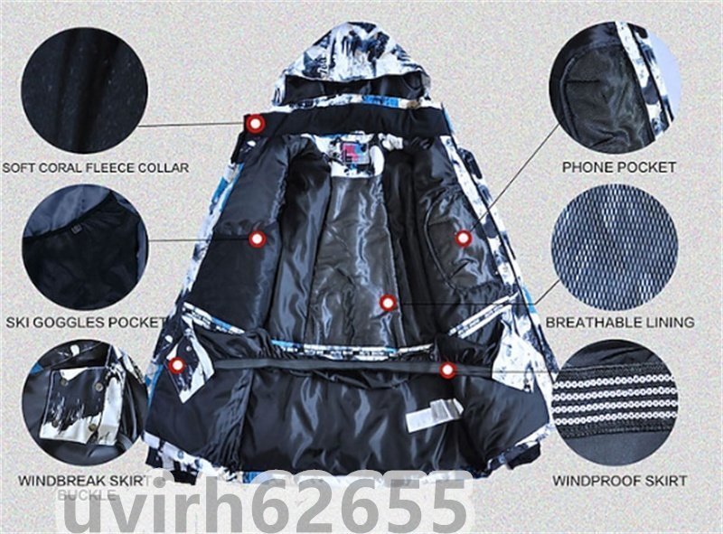 2. 防水機能:高性能の防水生地技術を使用し、雨や雪の侵入を完全に効果的にブロックし、水の浸透を防ぎます。スキーやその他の冬のアウトドアスポーツにおけるすべての雨や雪の天候に対応しています。
