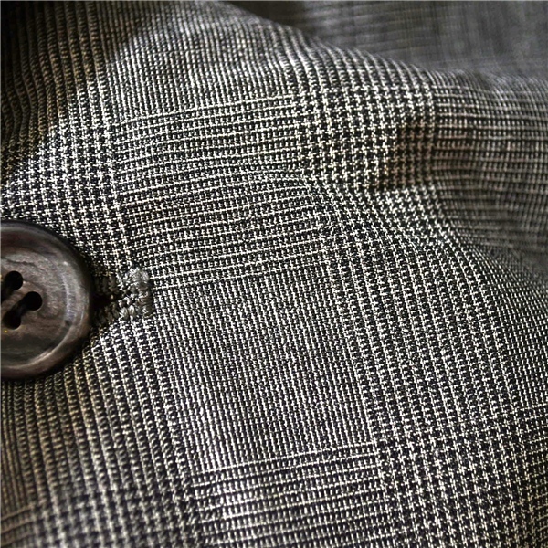 2つボタンシングル。フラップポケット。センターベント。袖口3つボタン。開き見せ。背抜き。ネーム刺繍なし。