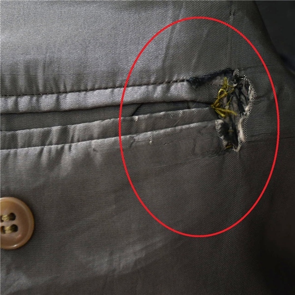 裏地状態:JA+JB+襟元にほつれあり+両袖先裏地に擦れあり+右内ポケットに破れあり(お使いいただくのには問題ございません。是非、ご検討ください。)