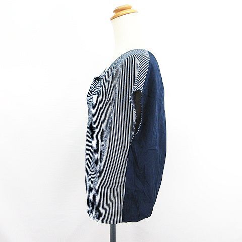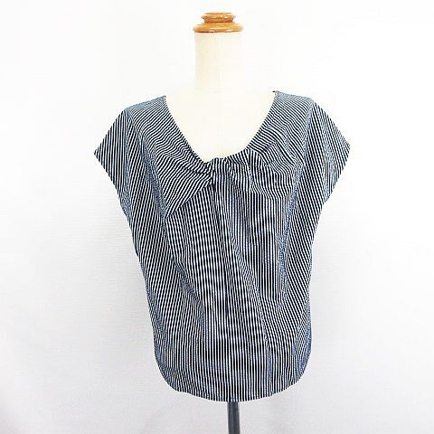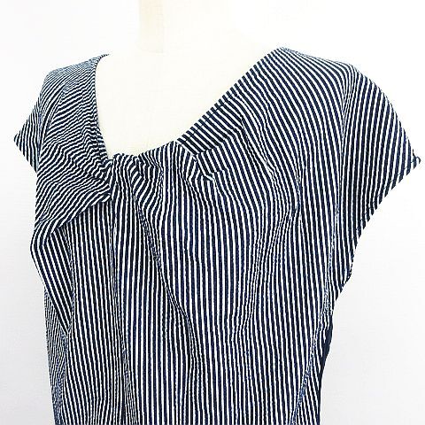 ロペ ROPE カットソー 前後2WAY フレンチスリーブ ラウンドネック 斜めストライプ ねじり 38 ネイビー ※EKM レディース