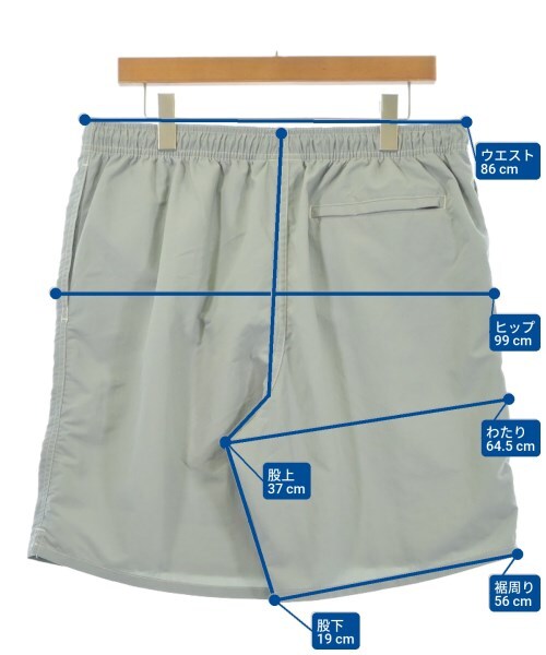 ウエスト:86cm,裾周り:56cm,ヒップ:99cm,わたり:64.5cm,股上:37cm,股下:19cm |