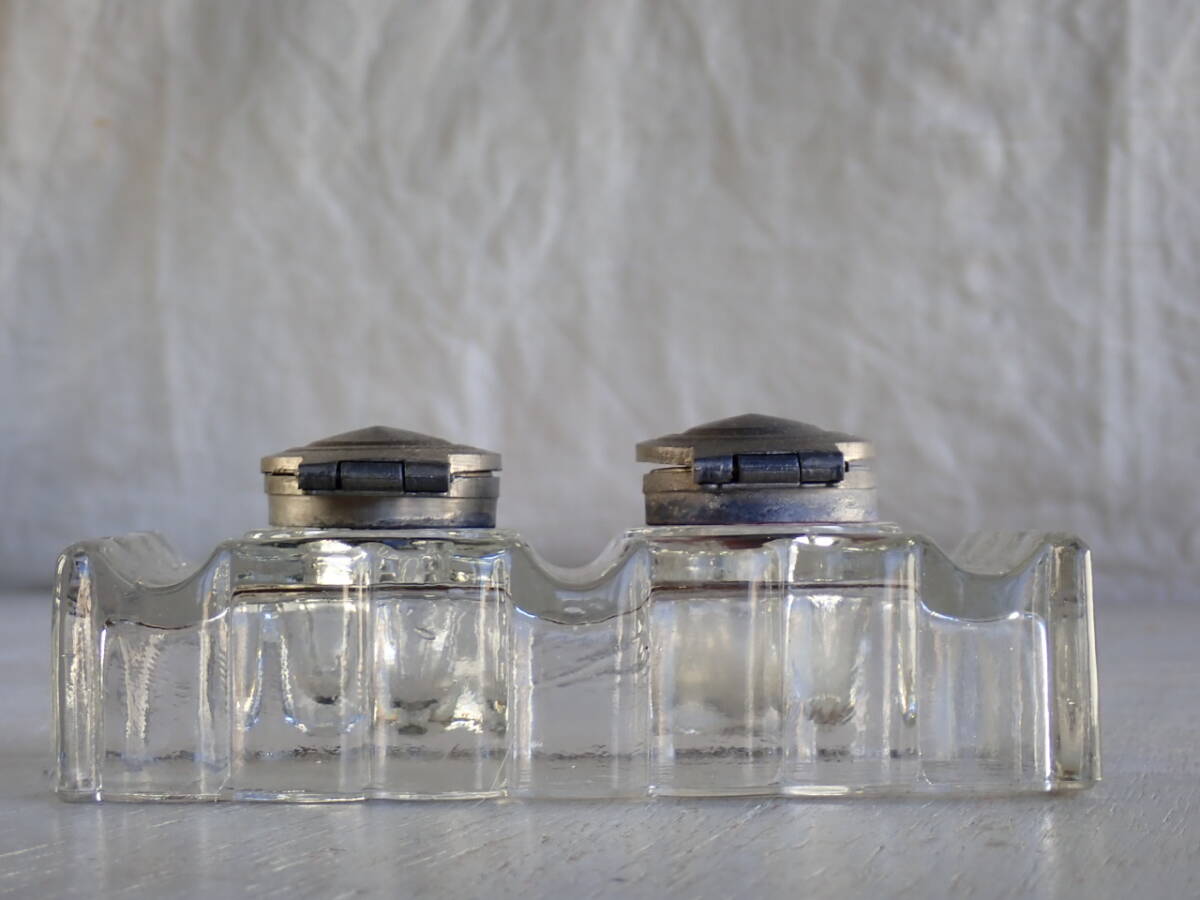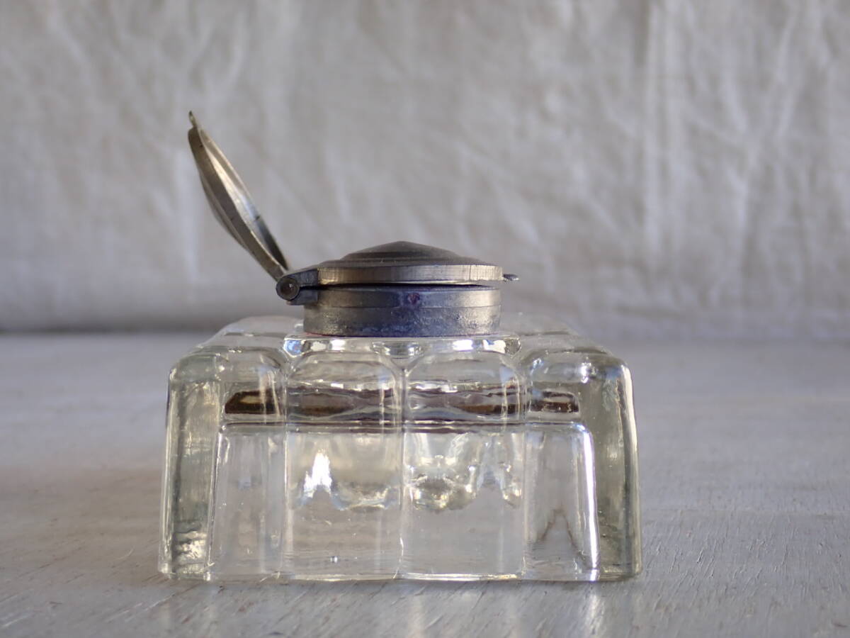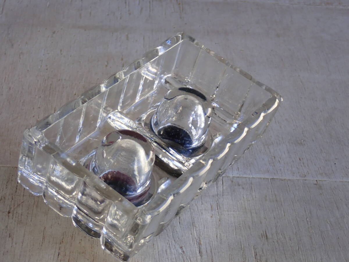 フランスアンティーク インクポット ガラス 古道具 ポット 小物入れ 容器 蚤の市 ブロカント シャビー インク瓶