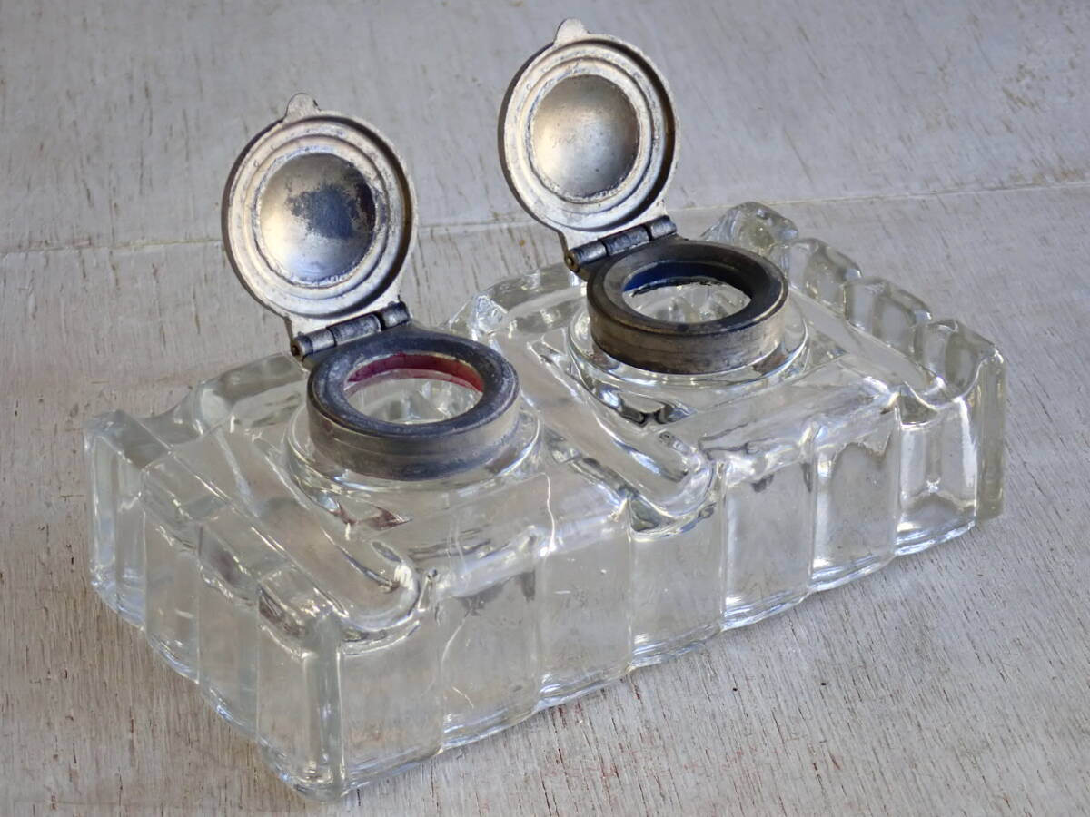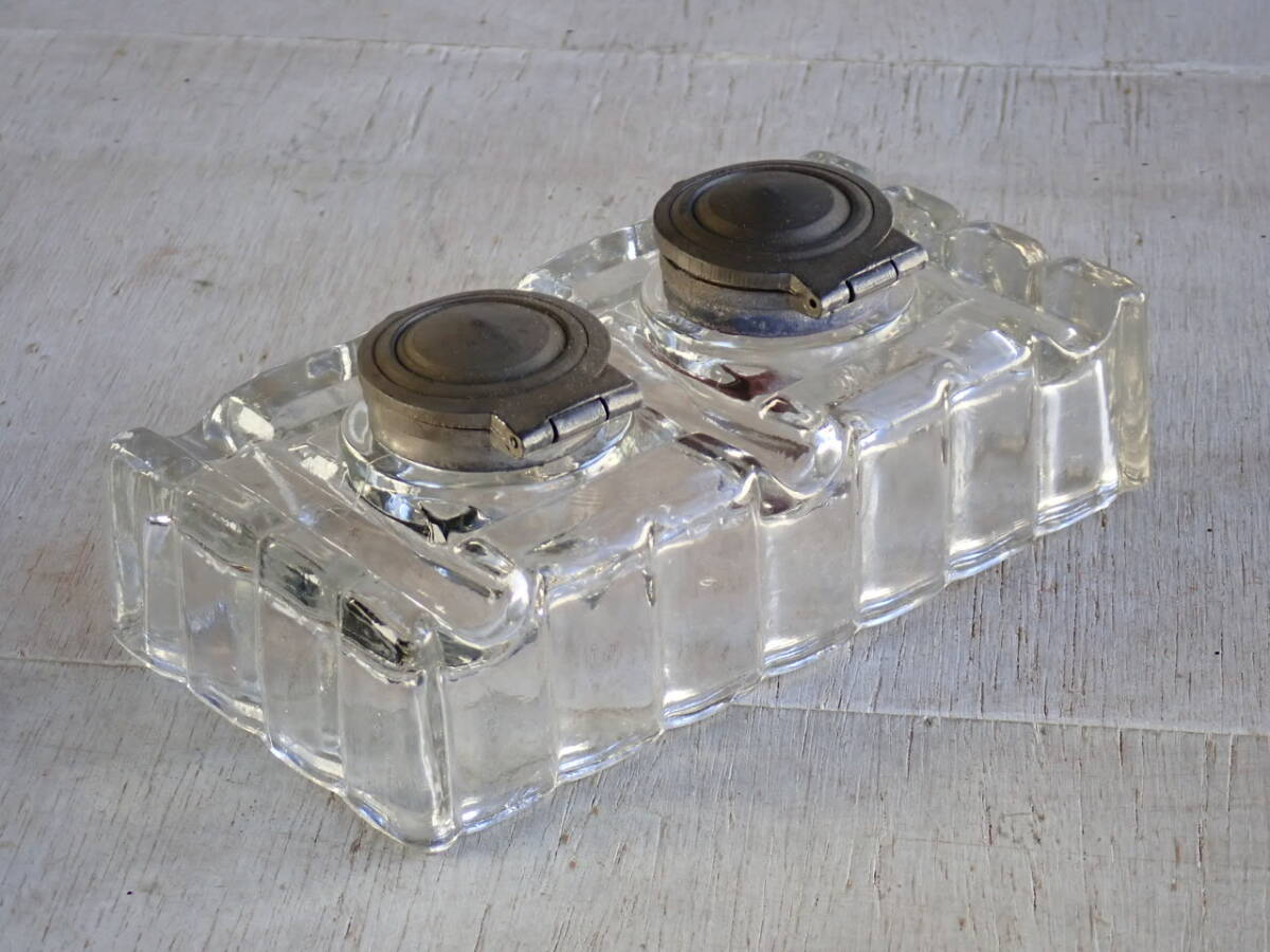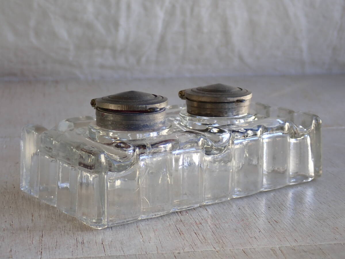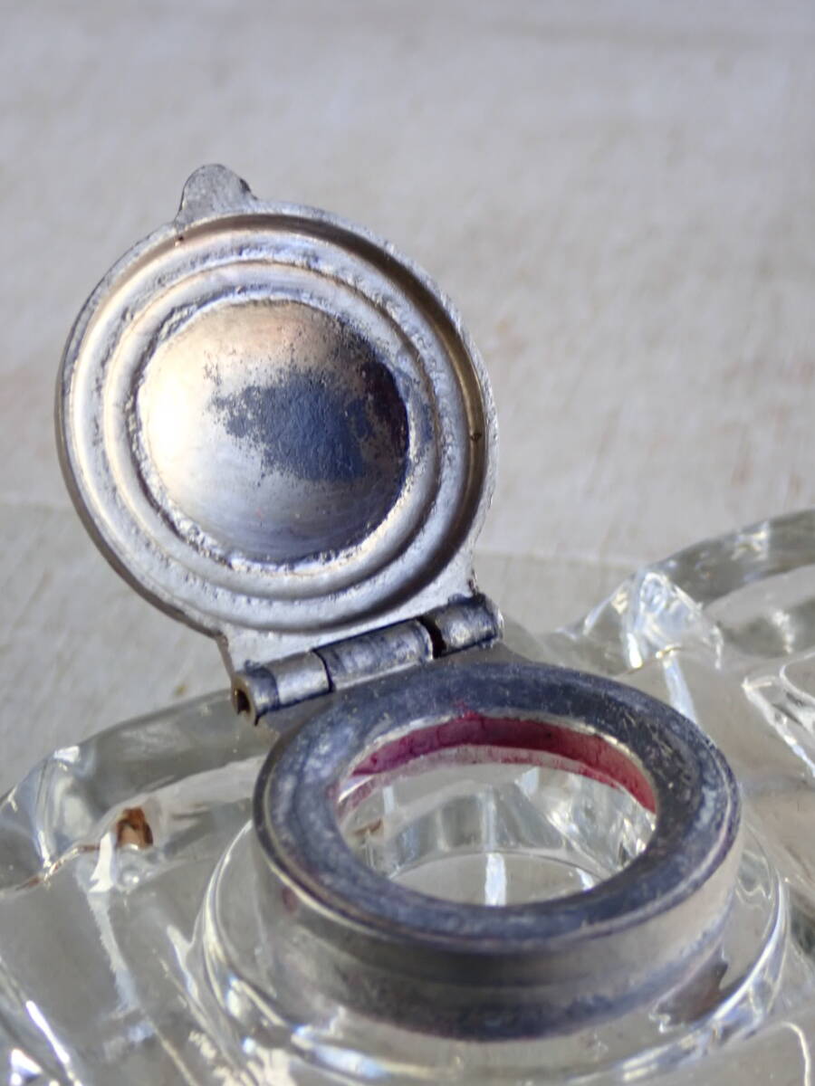 フランスアンティーク インクポット ガラス 古道具 ポット 小物入れ 容器 蚤の市 ブロカント シャビー インク瓶
